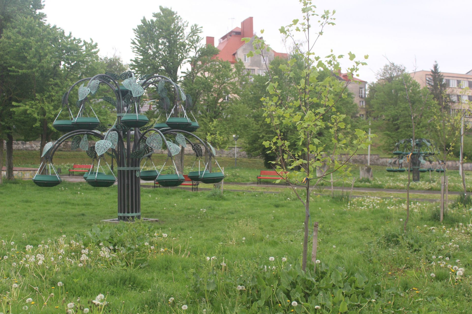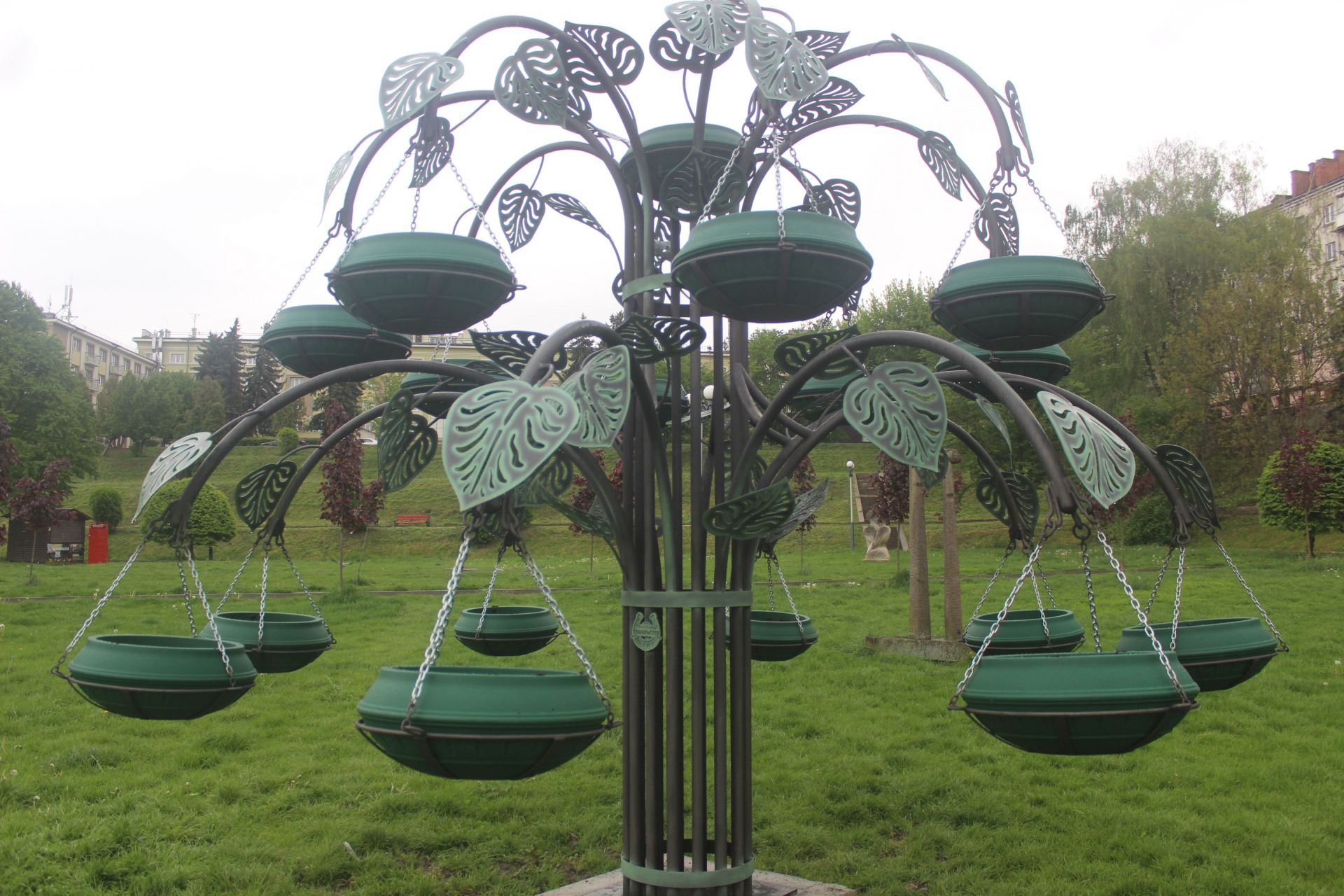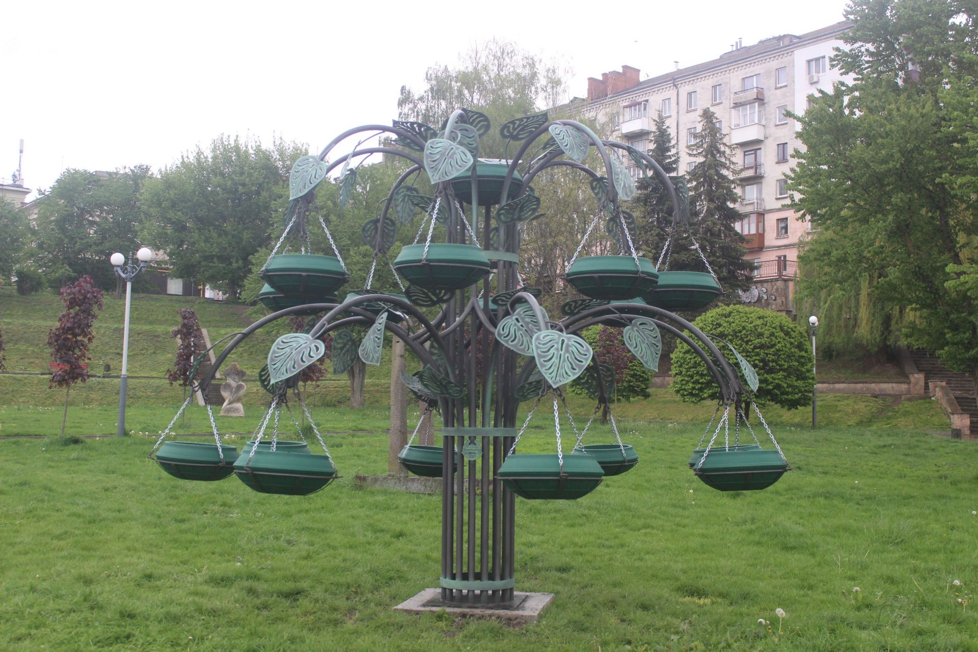 Окрім того, у парку ім. Шевченка на Набережній встановили ще дві інсталяції у вигляді дерев, де мають висадити квіти. Як пояснює Микола Лесів, таку конструкцію обрали не просто так, адже багато людей не розуміють, як себе поводити на клумбах.