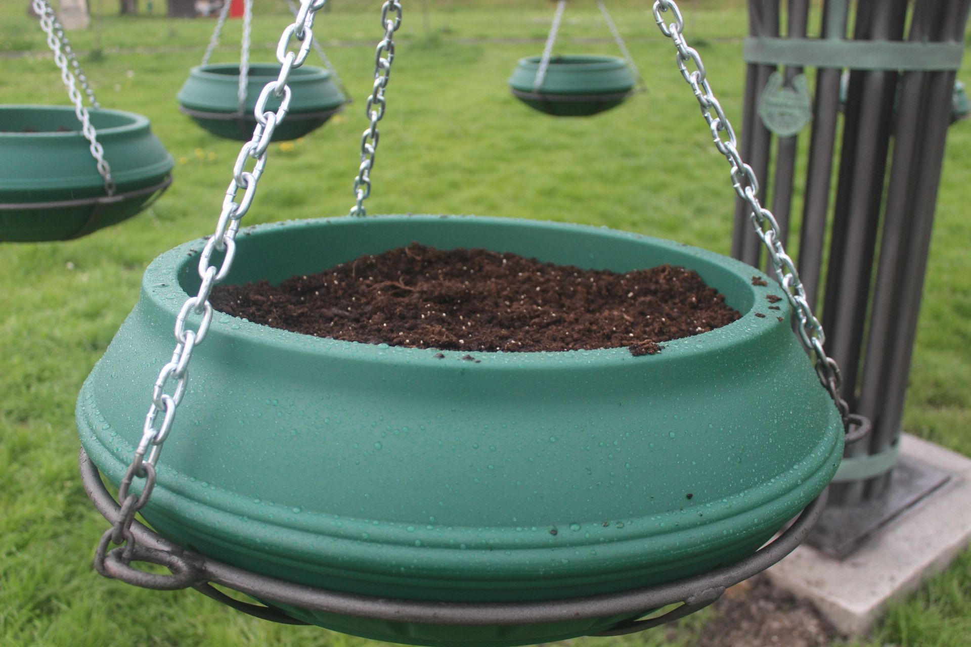 Там вже прикріпили спеціальні підвісні вазони та підготували землю. Квіти висадять тоді, коли буде гарна погода.