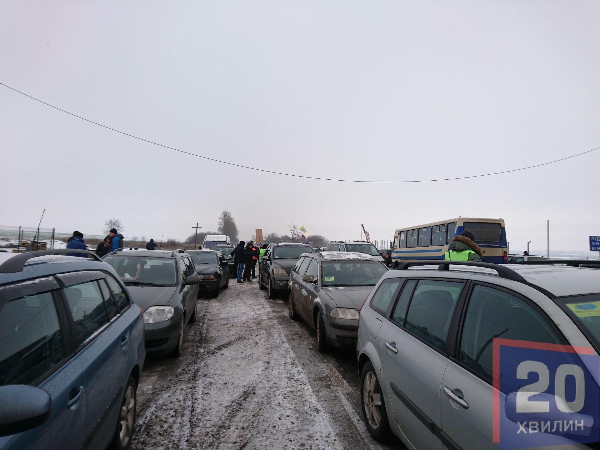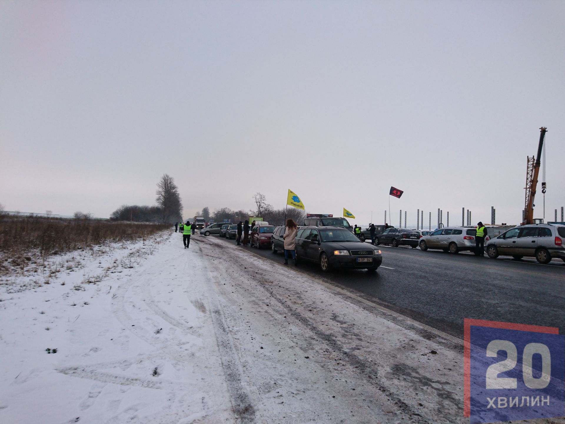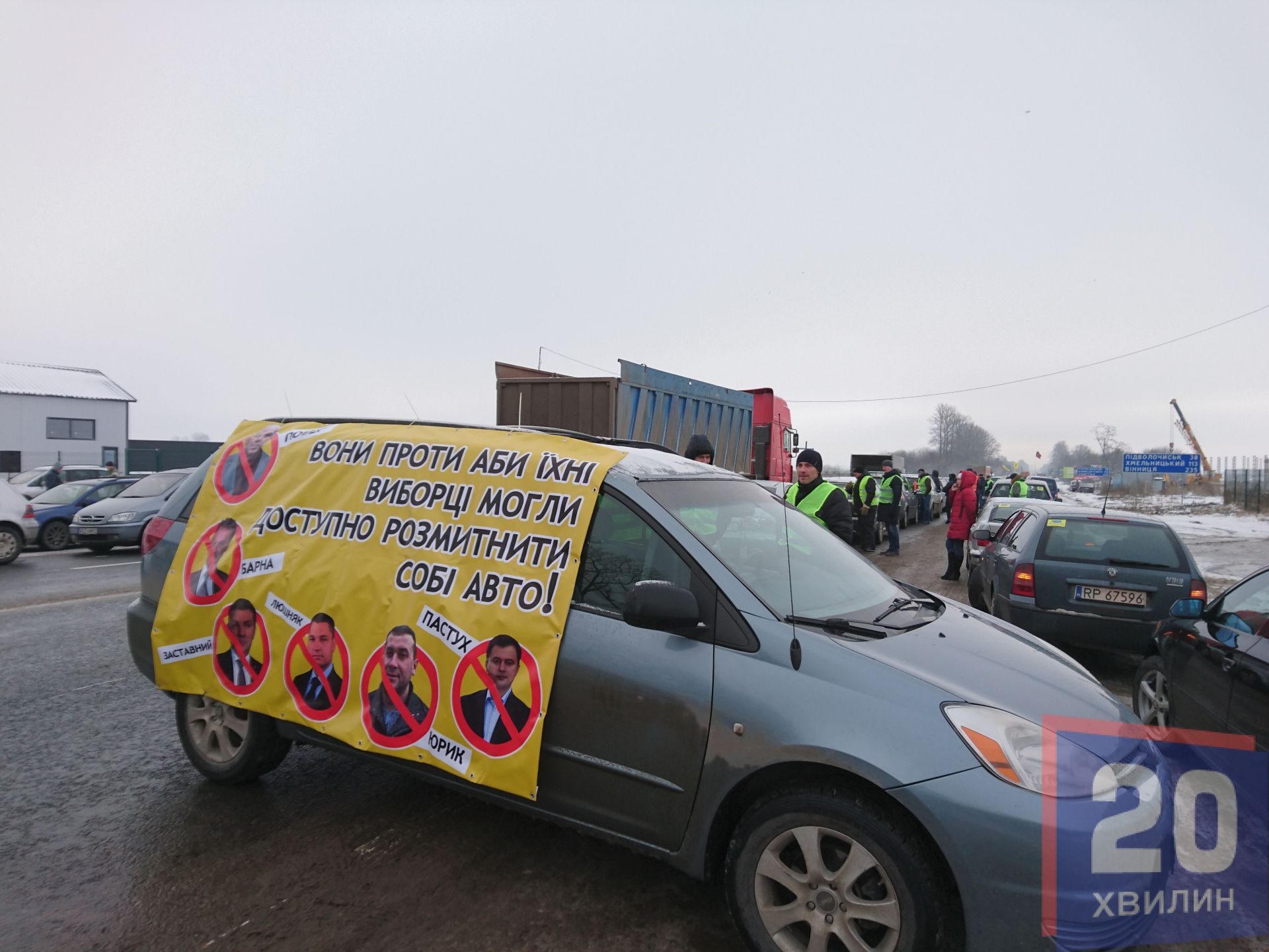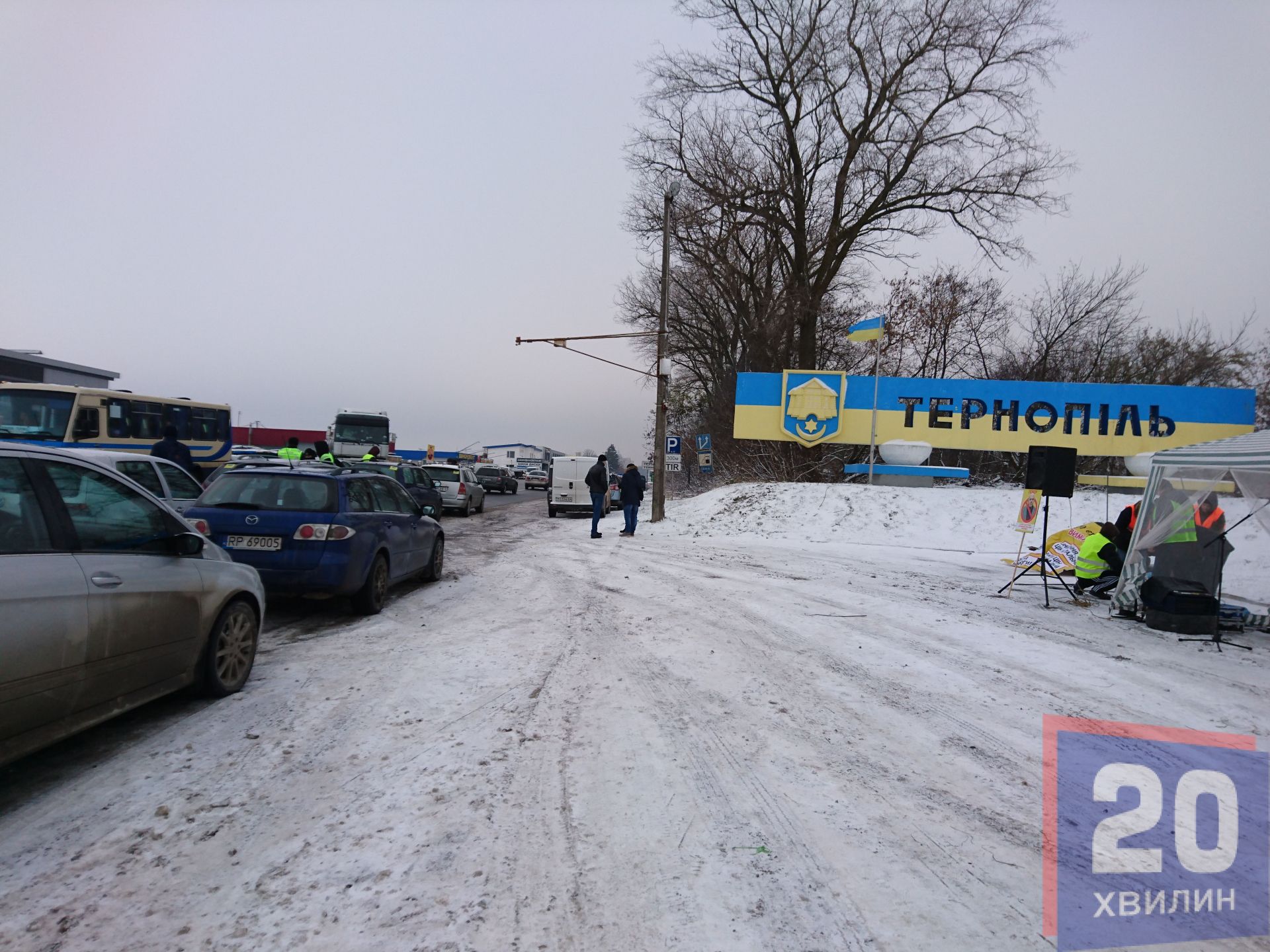 Євробляхери біля знаку "Тернопіль" на Підволочиському шосе почали збиратись з 9.00 20 листопада. Кожен з водіїв, який долучився до акції протесту - проти двох законопроектів.