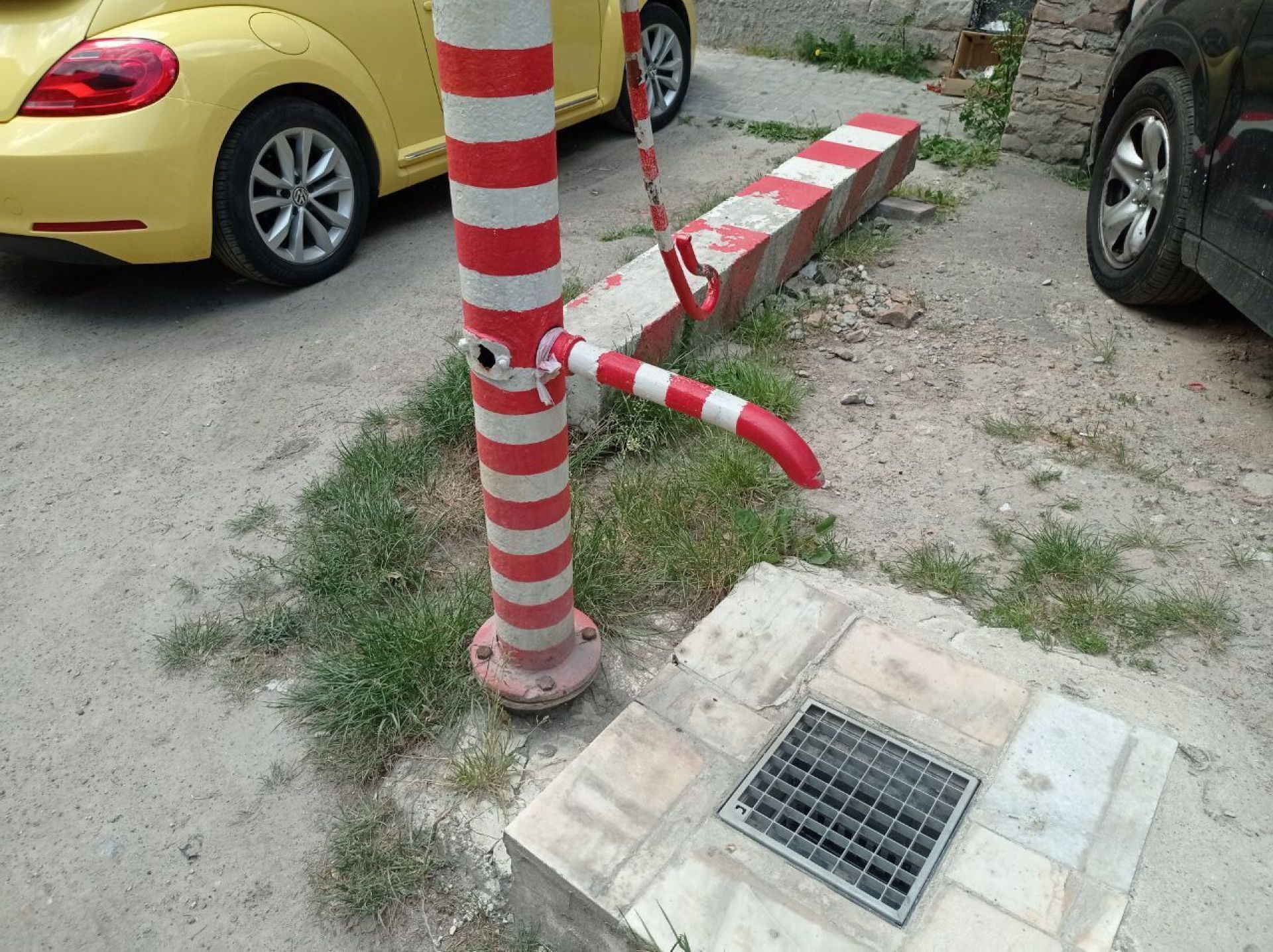 Ще одна така ж колонка була на Київській 5В. Кілька хвилин ми намагалися прокачати воду. Вона скрипіла, але вода так і не пішла.
