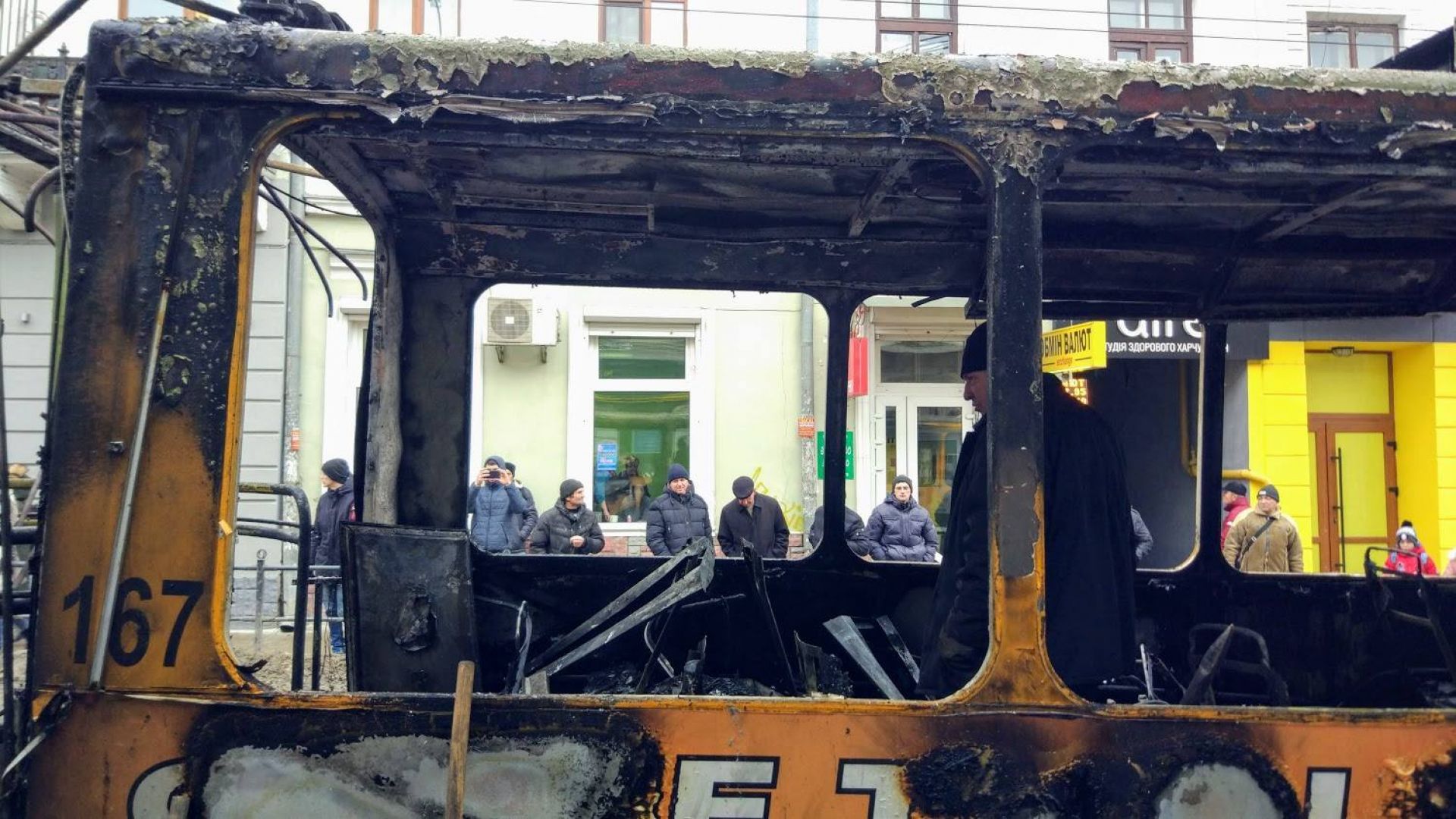 Що залишилось від тролейбусу - дивіться на фото. Автор - Олег Синовець