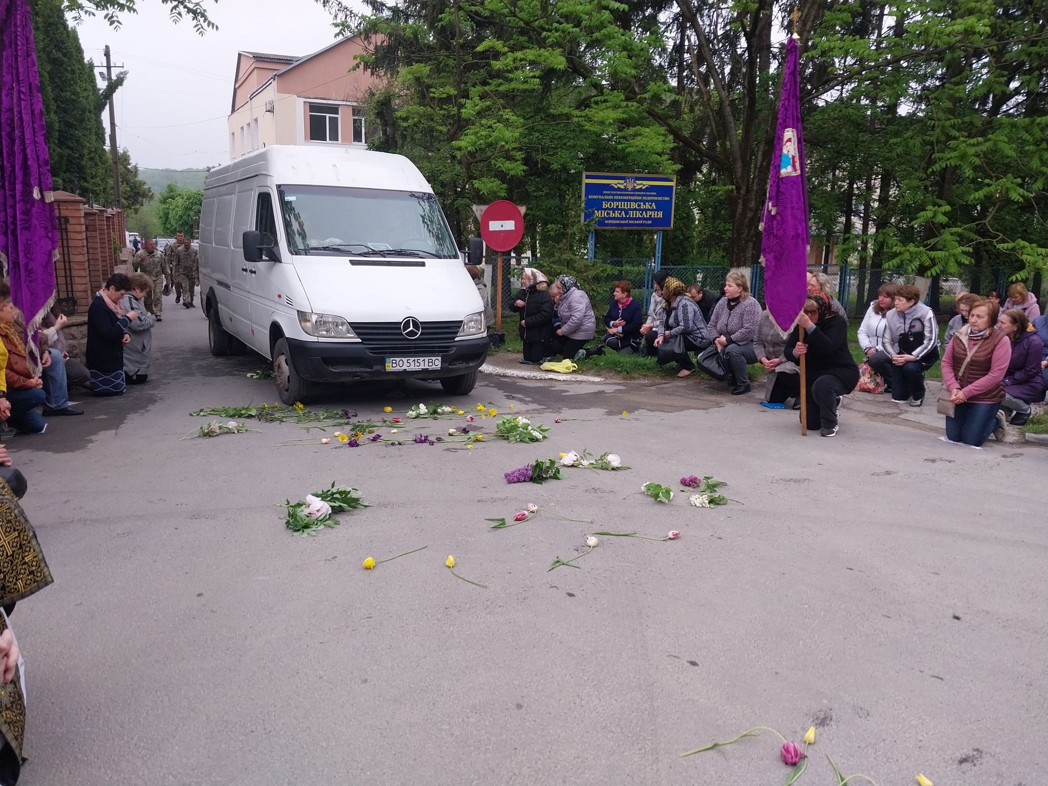 Жителі Борщівської громади на колінах з квітами і державними прапорами зустріли та провели в останню дорогу додому, кортеж із тілом загиблого Героя, захисника України Василя РОШКА, жителя села Іванків Скала-Подільської громади.