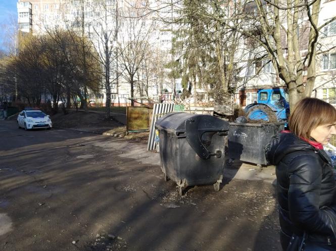 - За нормами має бути 20 метрів до дитячого майданчика, 20 метрів до вікон, - каже майстер дільниці Наталія. – В даному випадку ми спостерігаємо, що майданчик облаштовується менш, ніж за 20 м до будинку №16, але не менш 50 м до будинку №12. Ми не можемо більше ніде встановити, бо при будівництві будинків не було передбачено облаштування контейнерних майданчиків. У внутрішньому дворі будинку немає можливості встановлення контейнерного майданчика, оскільки там розташований дитячий майданчик. Територія, на якій встановлюють контейнери належить до прибудинкової будинку №16, тому відповідно до чинного законодавства майданчик має бути на прибудинковій і порушень тут немає.
