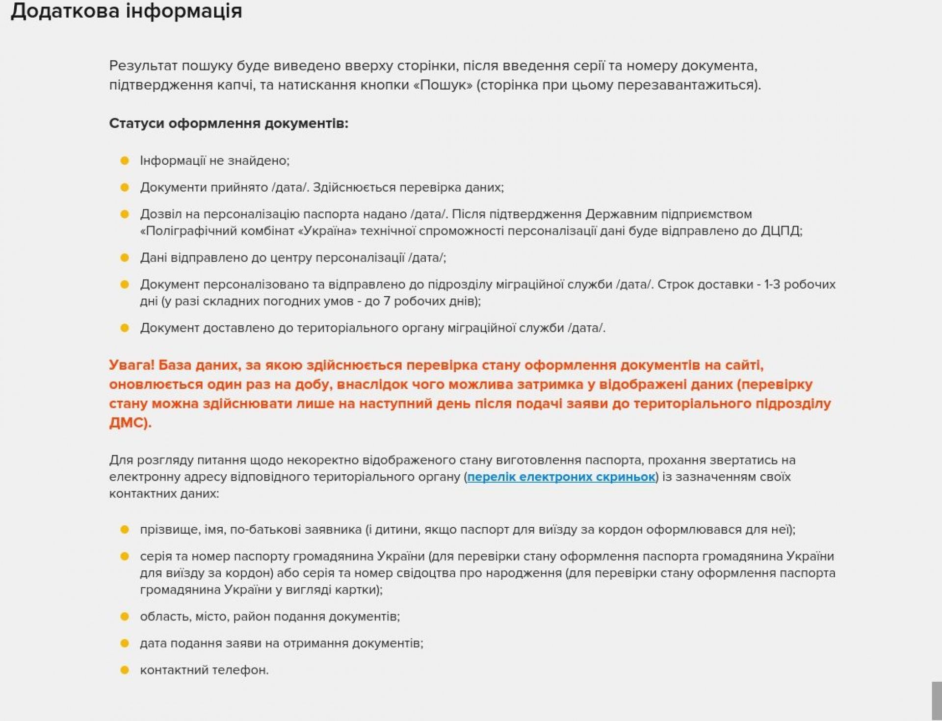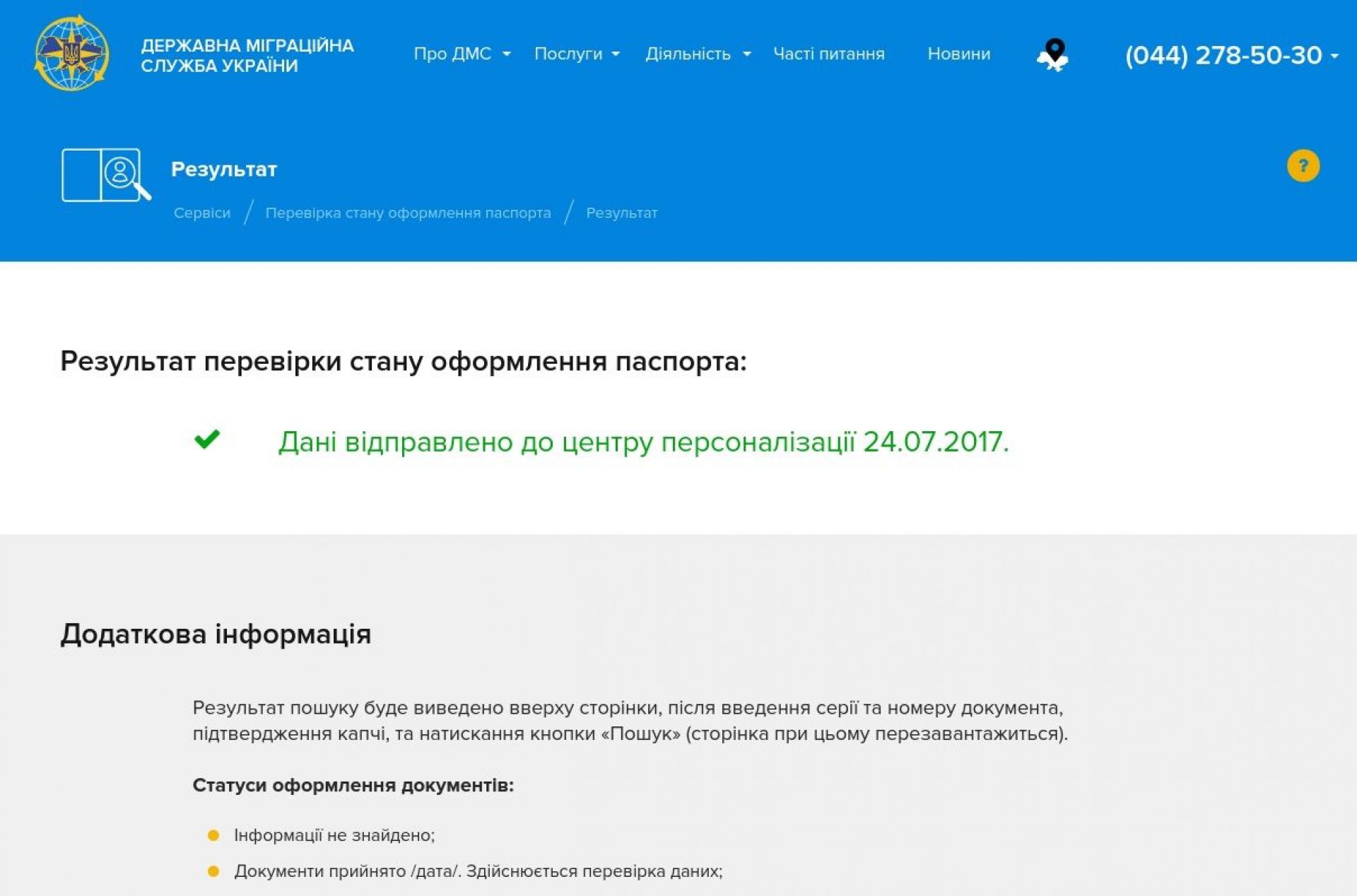 Дізнатися про стан оформлення та друку документа можна за допомогою електронного сервіса на офіційному веб-сайті ДМС України, дані сервіса оновлюються тричі на день.