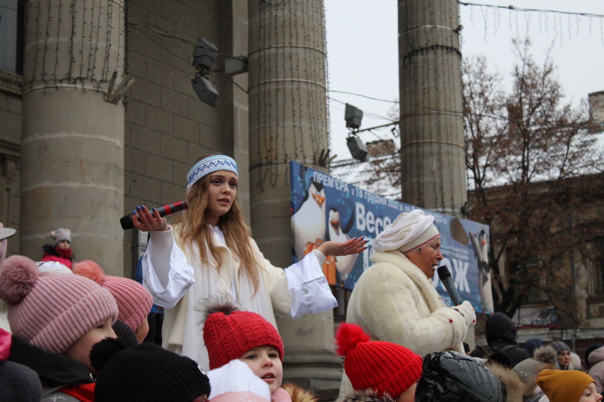 Далі на сцену вийшла Зима – головна героїня театралізованого дійства, яке показали дітям. Вона й керувала подальшим процесом, а саме веселим квестом для малечі.