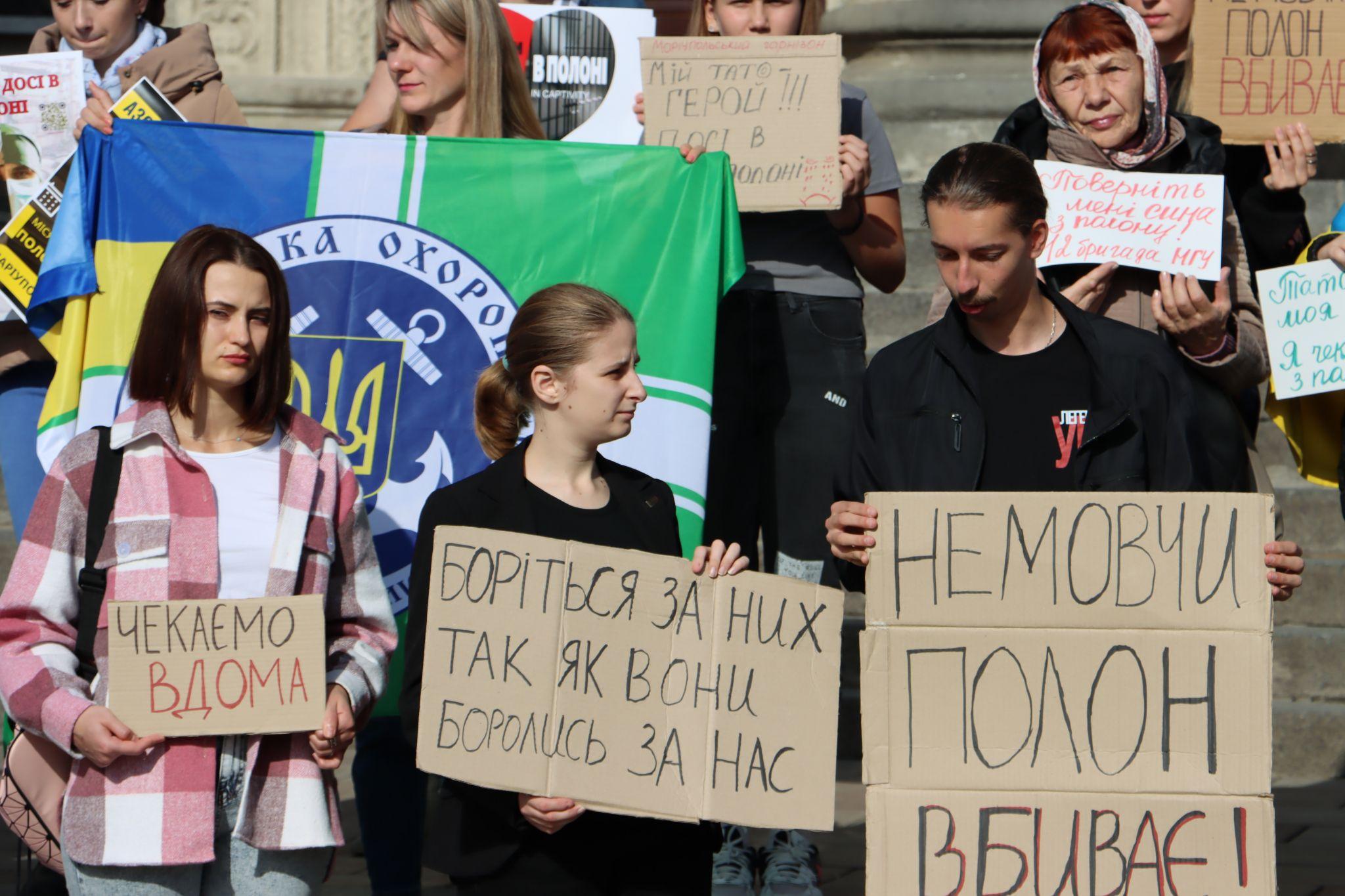 Учасники акції, одягнулися у темний одяг. Люди тримали у руках плакати із закликами звільнити та повернути полонених додому. «Волю захисникам Маріуполя», «Тато, ти моя душа! Я чекаю тебе з полону», «Мій тато досі в полоні…», «Не мовчи. Полон вбиває», «Боріться за них так, як вони боролись за нас», «Поки ми п’ємо каву – їх катують!», «Будь голосом полонених!» – такі надписи були на них.