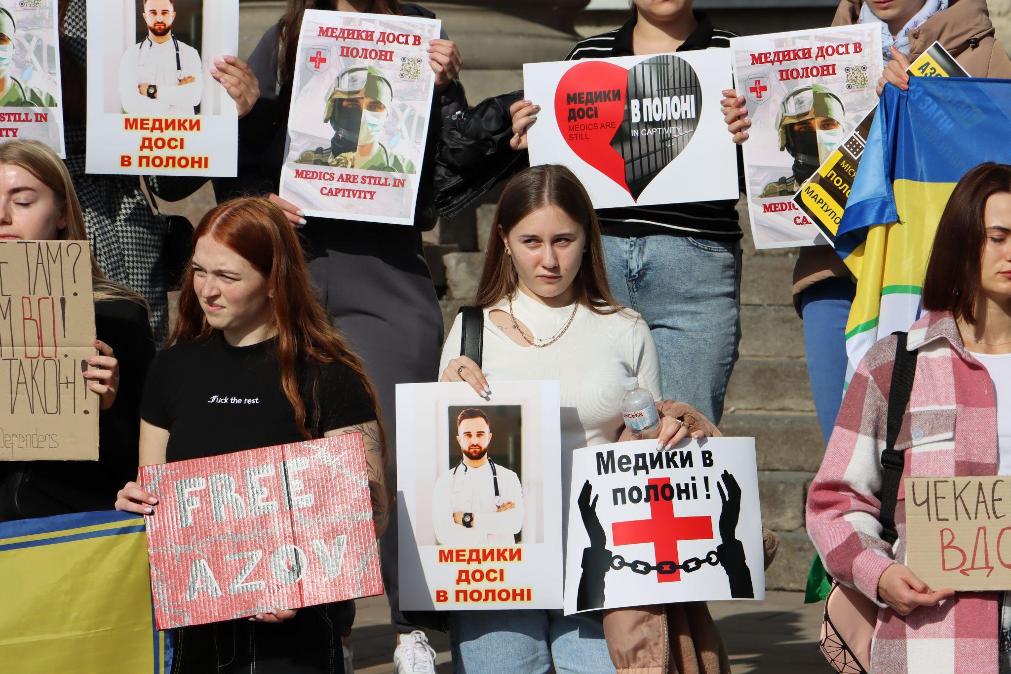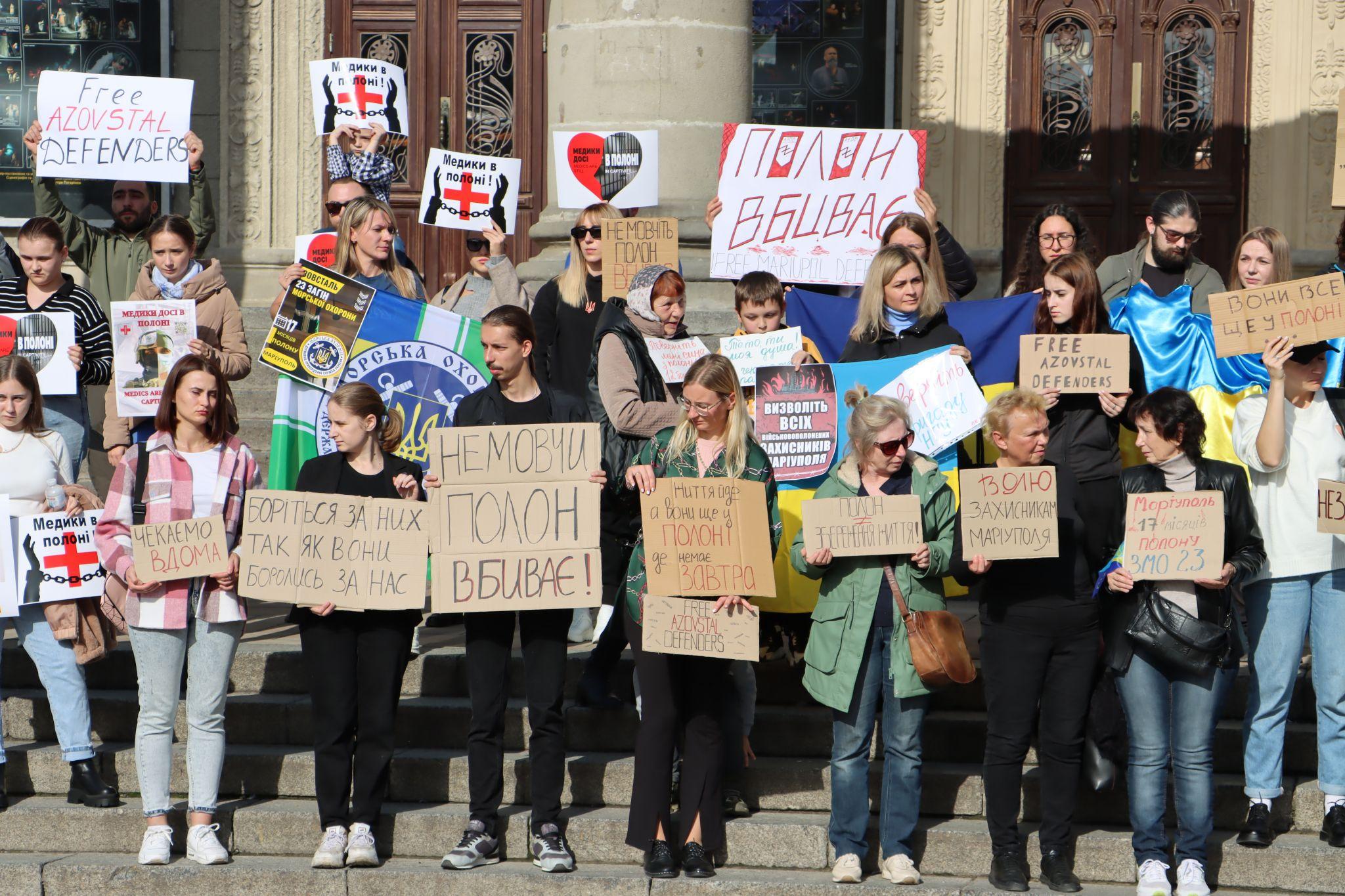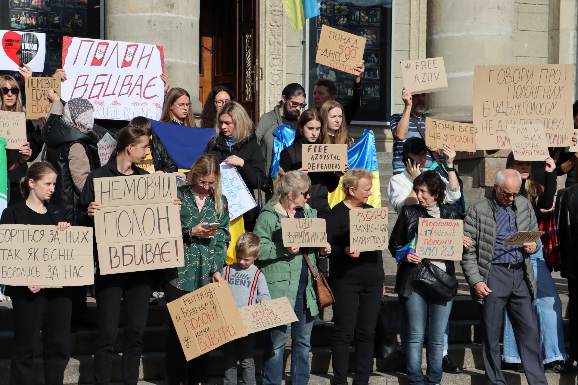 - Тут вкотре організували акцію, аби нагадати про близько 700 воїнів «Азову» та інших формувань, які досі у російському полоні.
