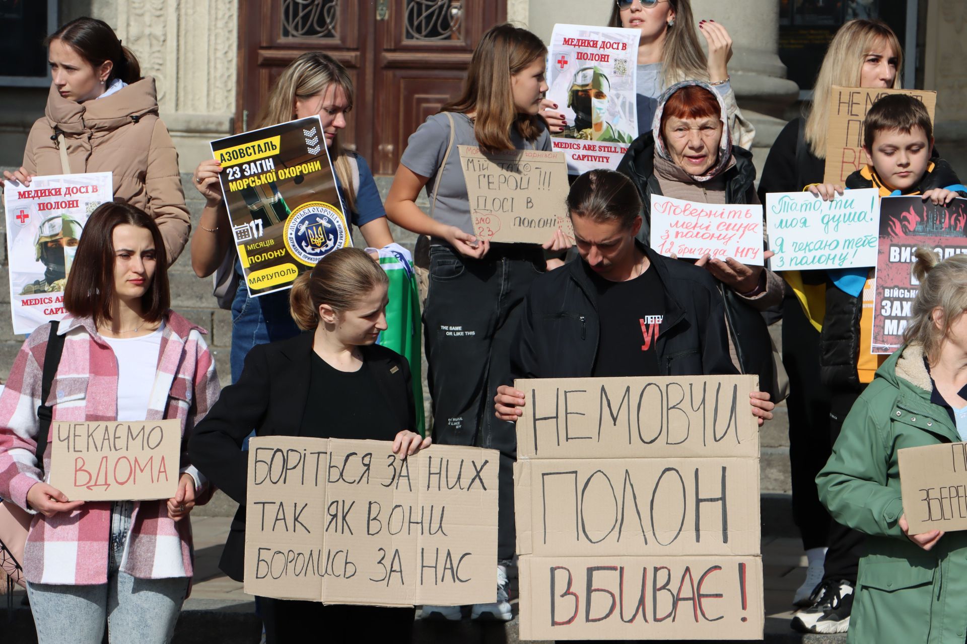 До заходу долучилися не тільки родичі бійців із бригади «Азов», але й воїнів 12 бригади Національної гвардії України та 23-го загону морської охорони з Маріуполя. Деякі учасники прийшли підтримати медиків, які досі перебувають у полоні ворога.