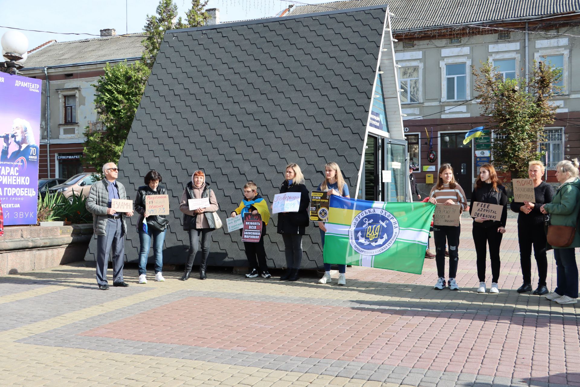 - У неділю, 22 жовтня, перед драмтеатром зібралися десятки людей.