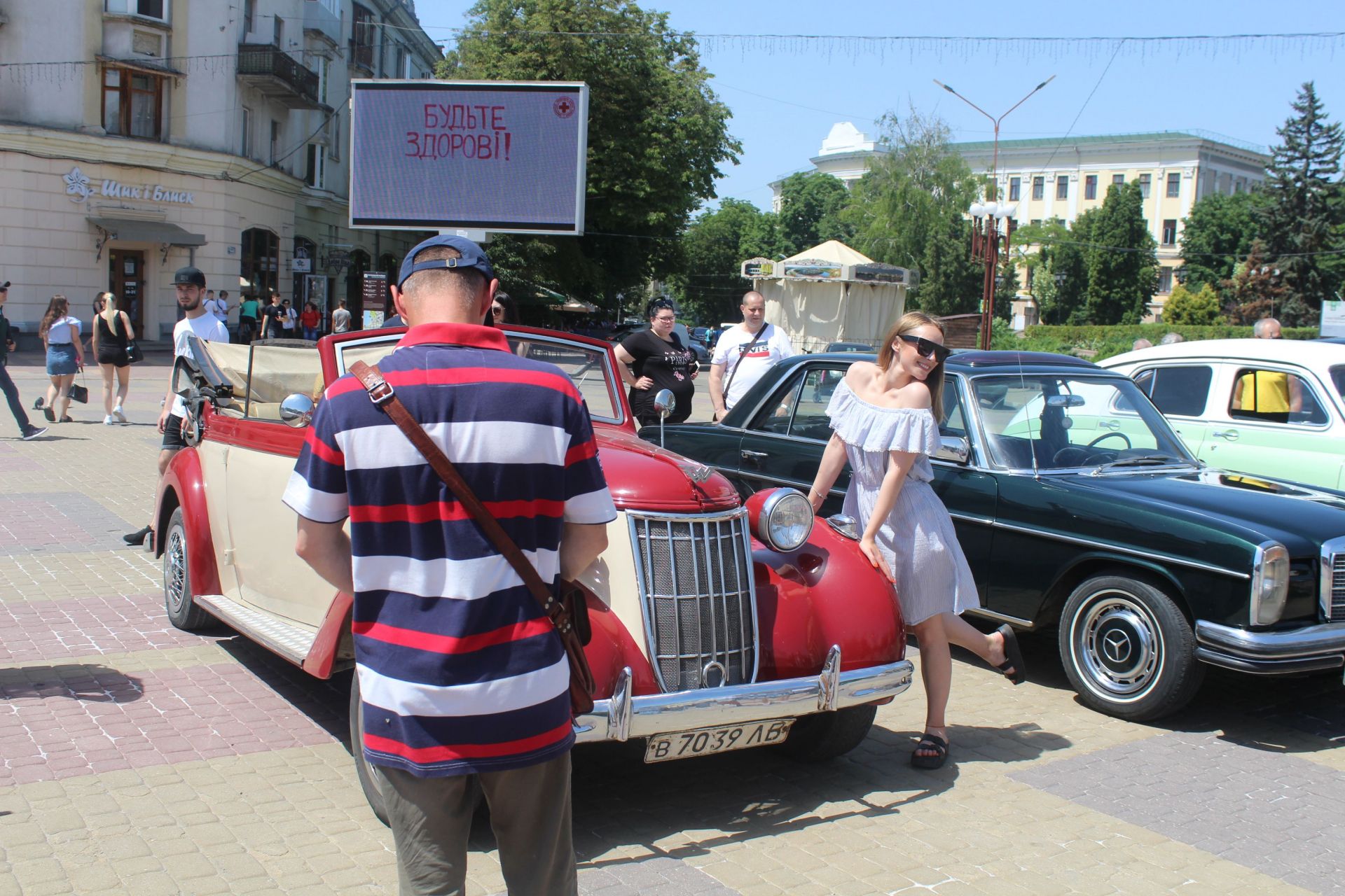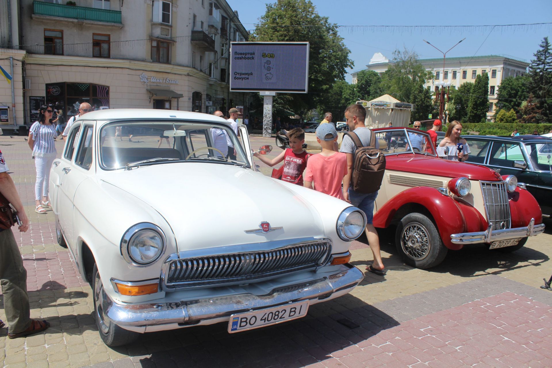 Незважаючи на спеку, на Театральному майдані зібралось чимало тернополян. Люди рийшли подивитися на колекцію відреставрованих ретро автомобілів. Стоятимуть вони до вечора, тому всі охочі можуть подивитись на унікальні автівки вживу, сфотографуватися та навіть побувати всередині.