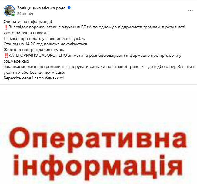 Є влучання по підприємству на Тернопільщині