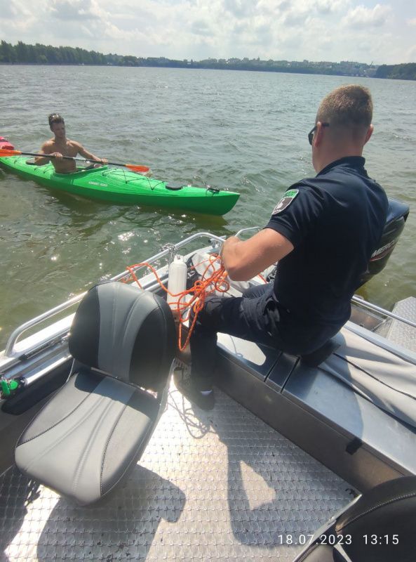 Муніципальні інспектори надали громадянину невідкладну допомогу та доставили на берег Тернопільського озера. Йому пояснили правила поведінки на воді.