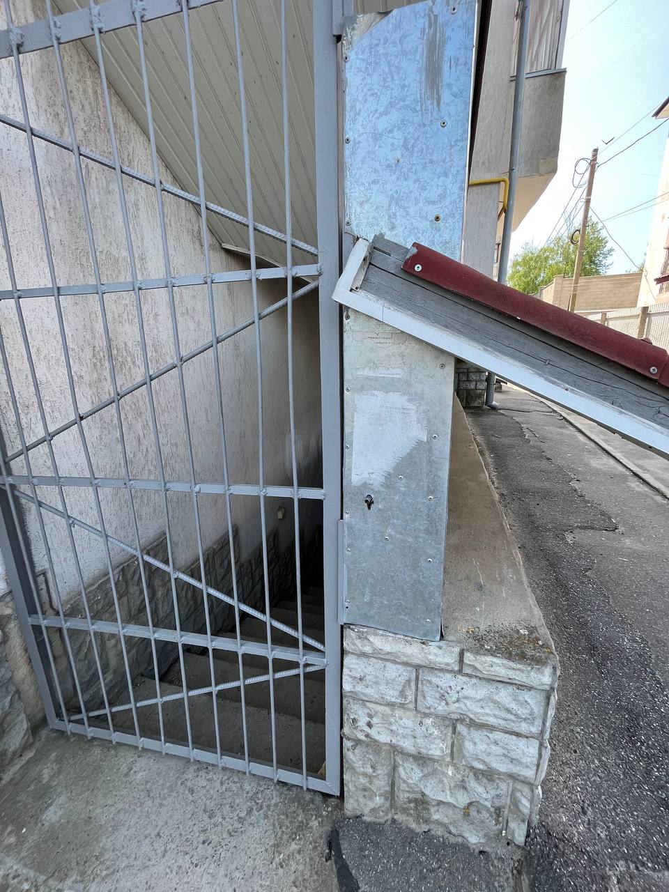 Під час нашого візиту — 14 травня об 11.47 годин у підвальне приміщення, яке слугує укриттям, потрапити сюди не вдалося. Адже там стоїть решітка і відкрити її можливо лише ключем. Біля будинку ми зустріли жителя цього будинку і поцікавилися, чи дійсно це укриття за сімома замками для людей?