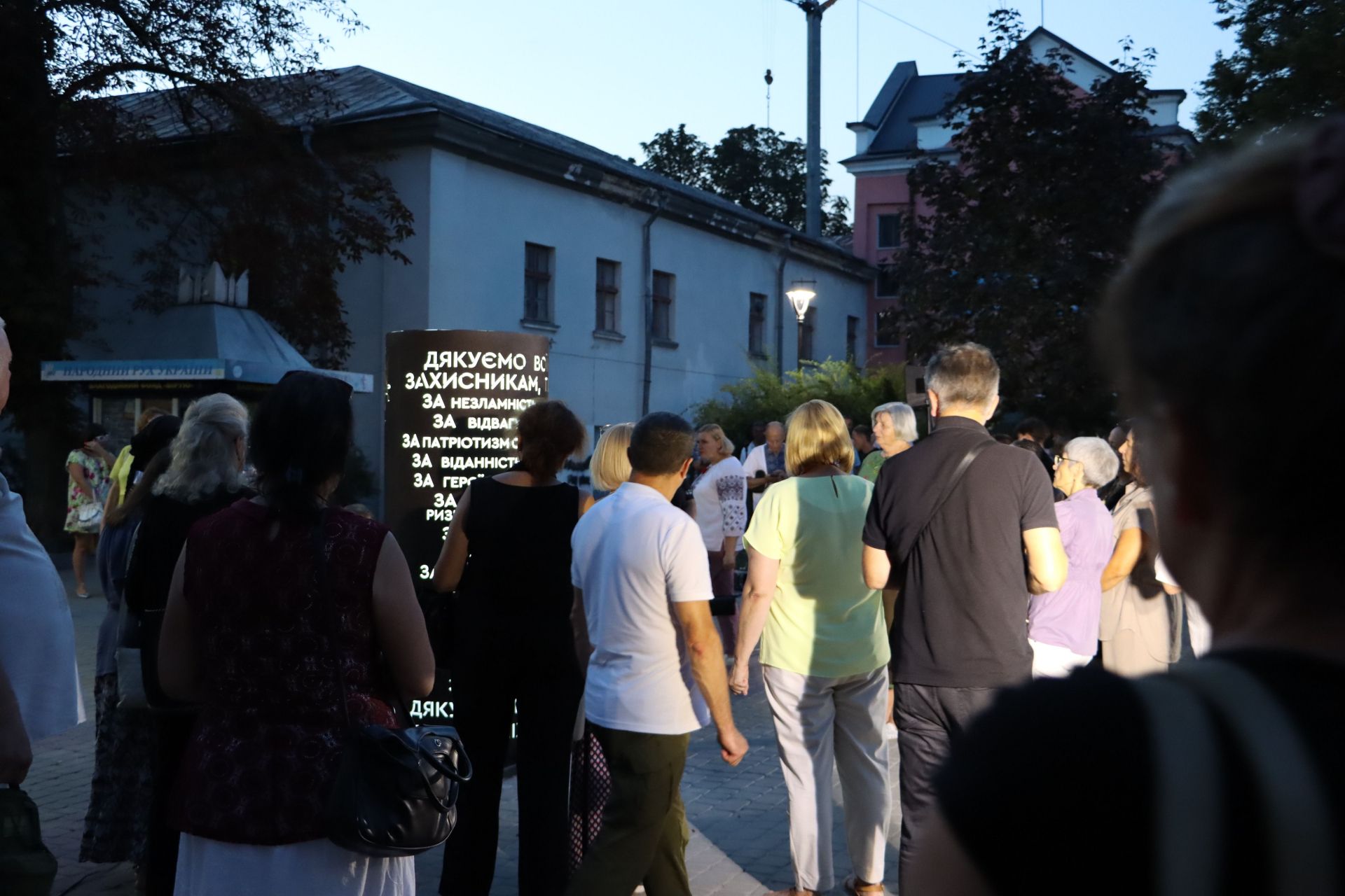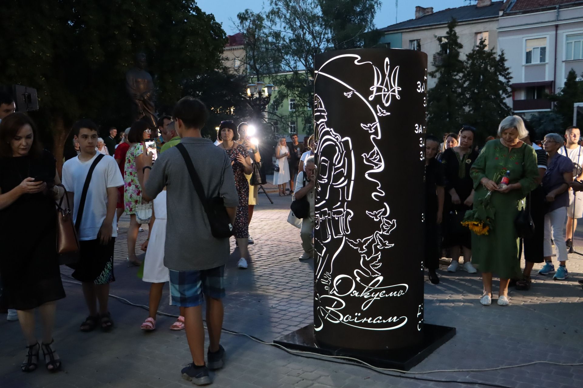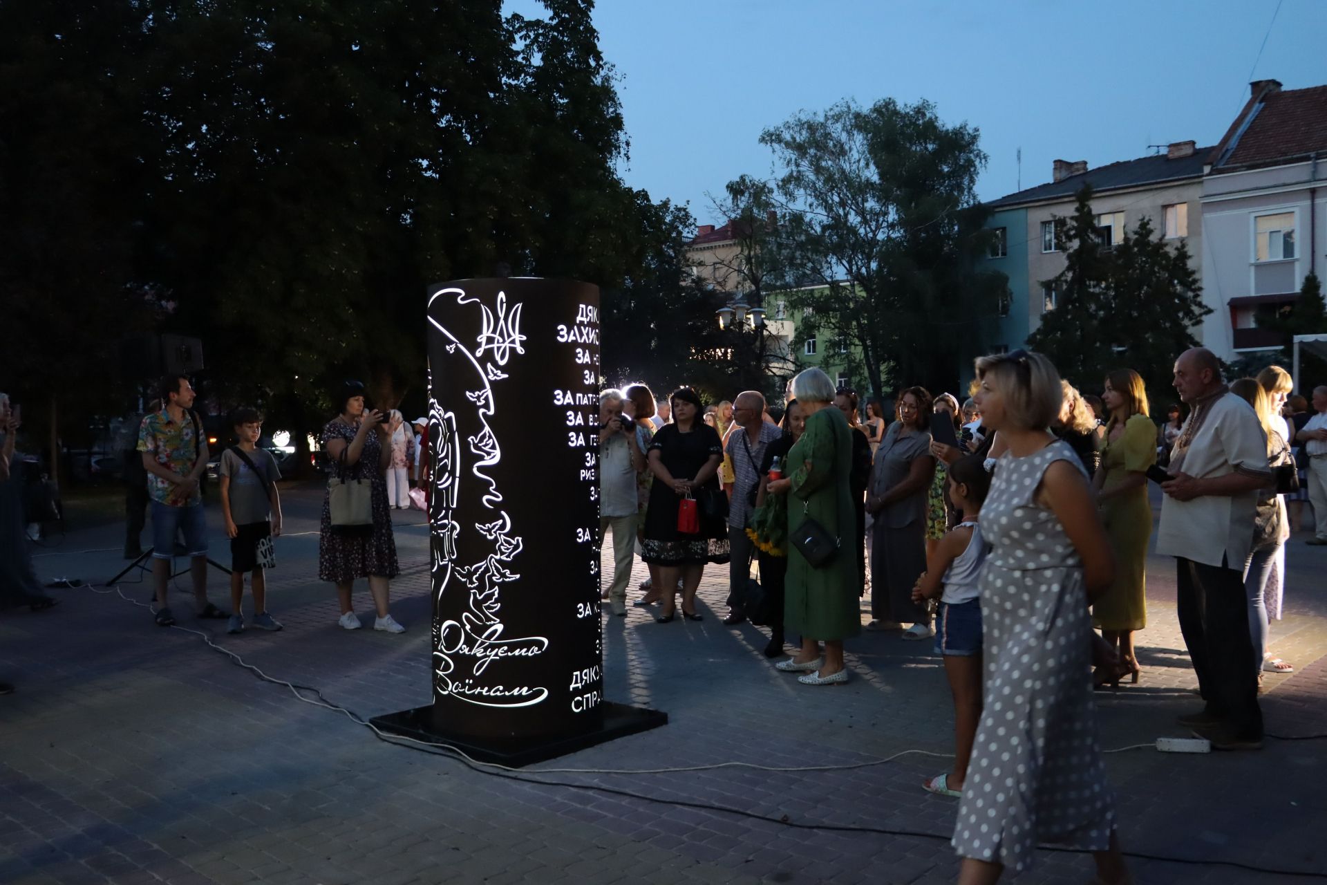 Одним із останніх заходів у День міста, 28 серпня, стало урочисте відкриття цієї тематичної стели у центрі Тернополя. Захід розпочався о 20 годині і на нього зібрався цілий натовп.