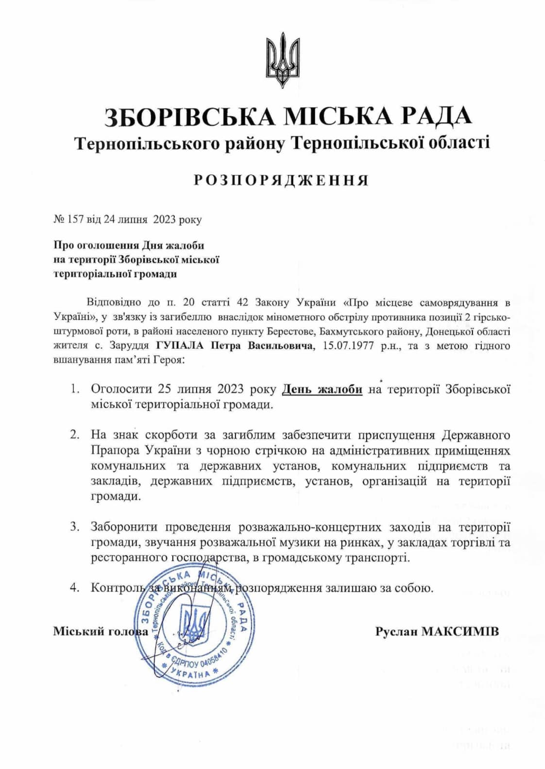 - У Зборівській громаді 25 липня оголошено День жалоби.
