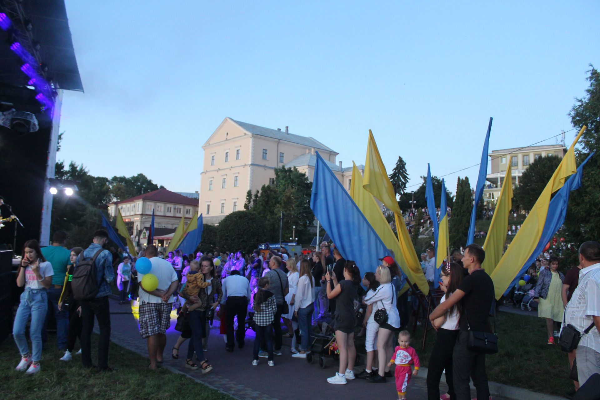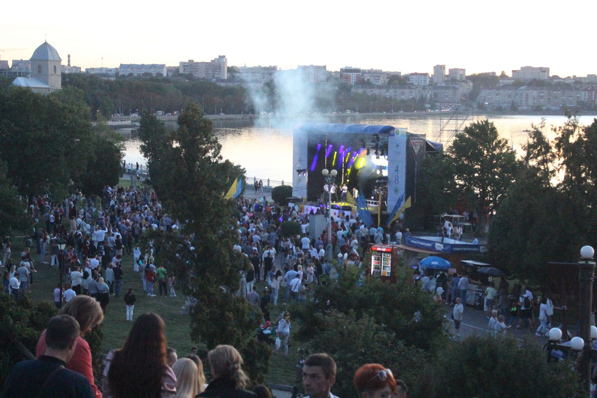 Незважаючи на карантин, у парку Шевченка на День міста було людно. Там зібралося багато людей. Біля набережної облаштували сцену, де відбувалося святкове дійство.