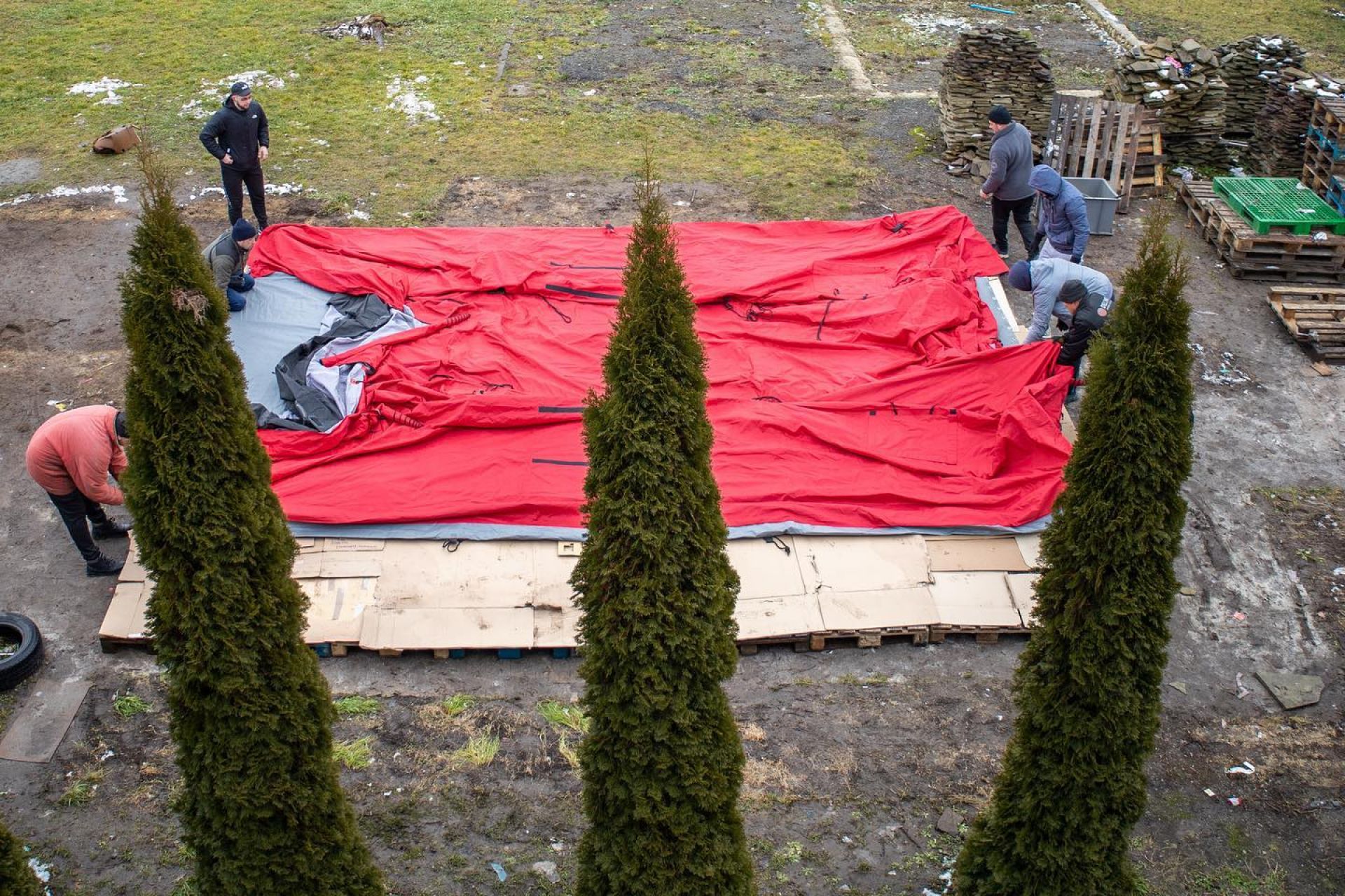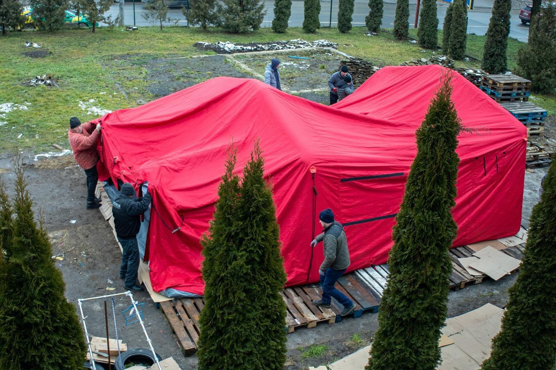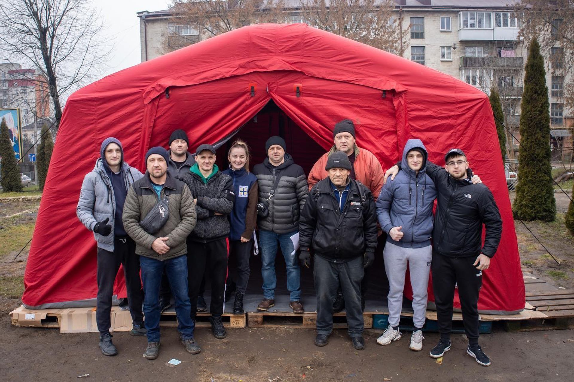 — Тут наші потребуючі, переселенці, які щодня приходять до Карітасу мають змогу погрітися, мають змогу отримати гарячі обіди, — зазначив директор Тернопільського благодійного фонду «Карітас» отець Роман Загородний. — Я дуже дякую усім добродіям, бо це надзвичайно важливо для наших потребуючих. Дякуємо також волонтерам, які допомогли встановити намет. Дякуємо за Вашу жертовність та постійну готовність прийти на поміч. Хай Бог благословляє кожного, хто не залишається осторонь людей у потребі.