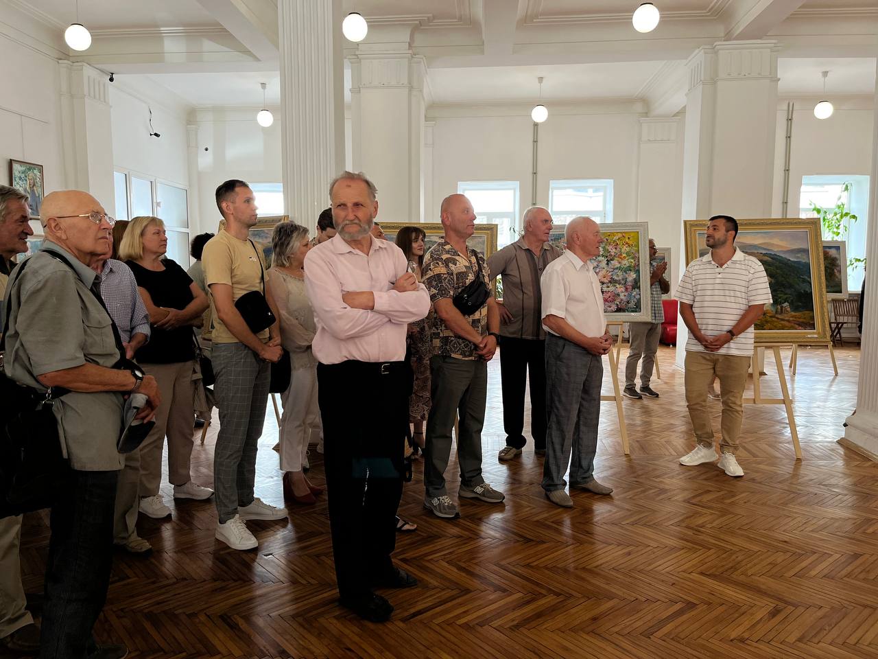 — Кілька років тому подружився з паном Миколою у соціальних мережах, — каже Андрій Шкула. — Тому, коли дізнався, що його роботи будуть в «Перемозі», вирішив прийти. Отримав задоволення і від творів, і від особистого знайомства. Зʼясувалось, що значна частина життя митця повʼязана із селом Шляхтинці, а саме звідти родом мій батько. Цікаво було почути навіть те, що дружина художника, яка працювала в школі, була класним керівником у мого тата. На частині робіт, до слова, зауважив краєвиди довколишніх сіл, де часто проводив шкільні канікули.