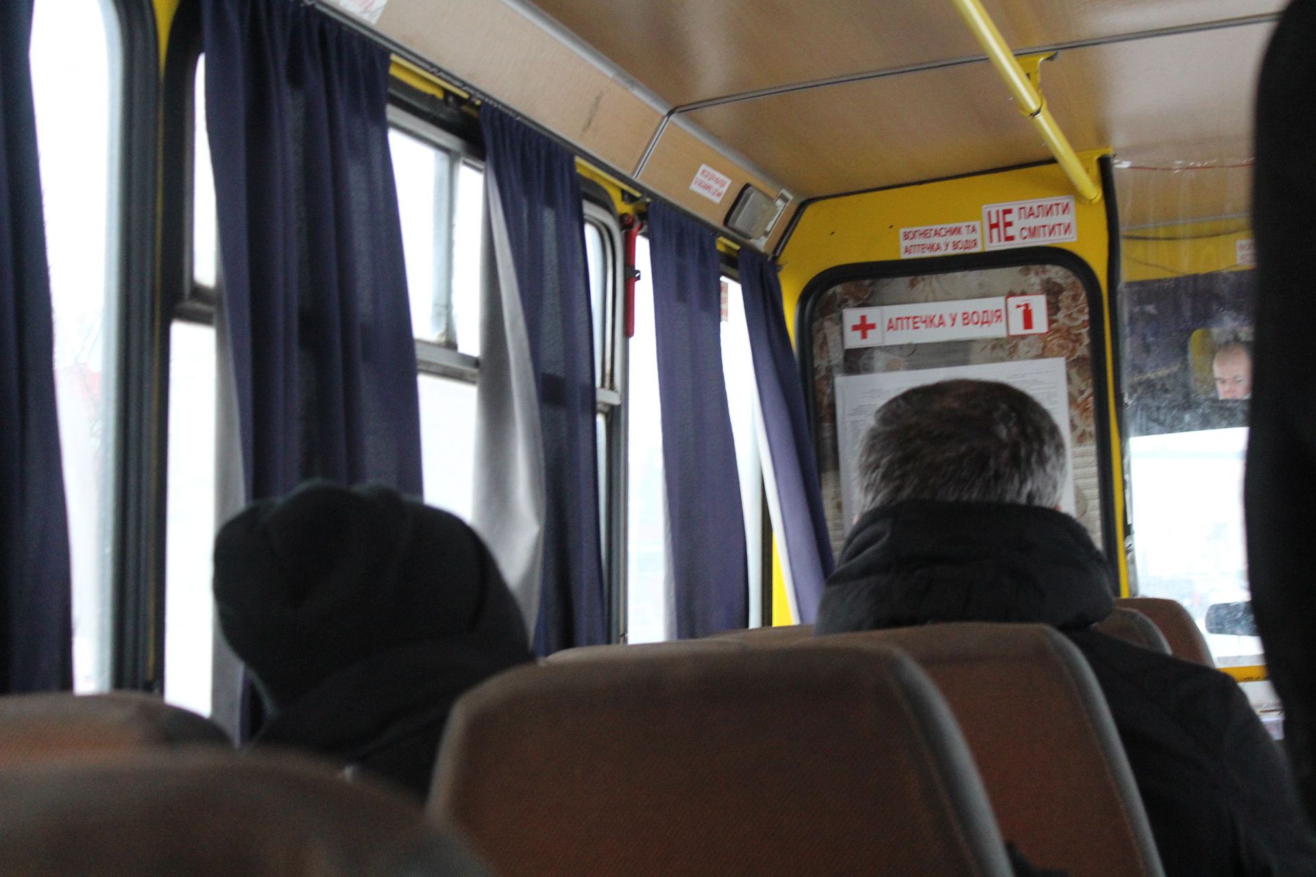 Хоча на вулиці сніг, і майже в кожній маршрутці було багато бруду та води на підлозі – в цій було значно чистіше. Імовірно водій нещодавно прибрав у салоні.