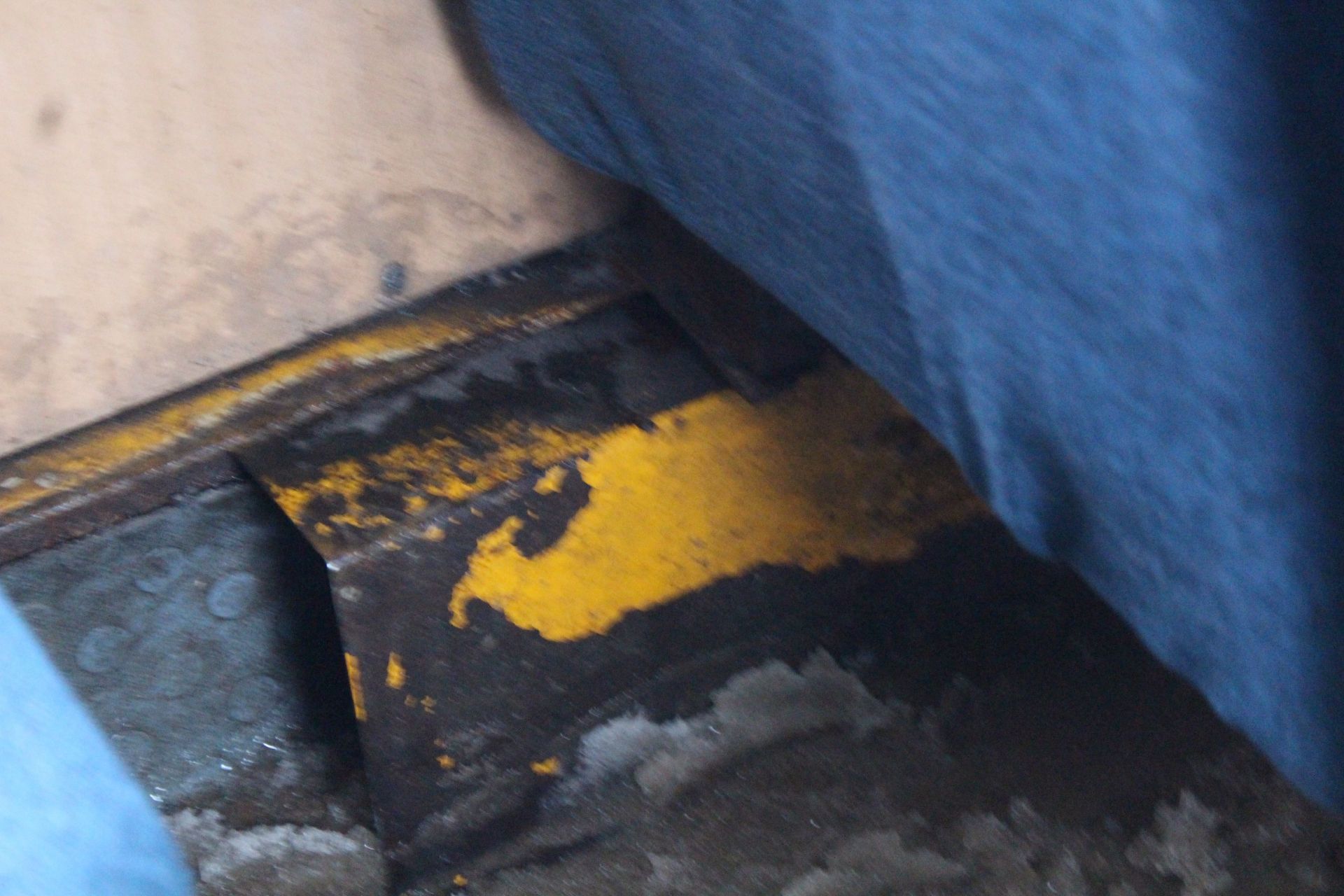 Внизу дверей, де встановлена система відкривання, у маршрутках є щілини. В цій маршрутці їх закрили гумою.