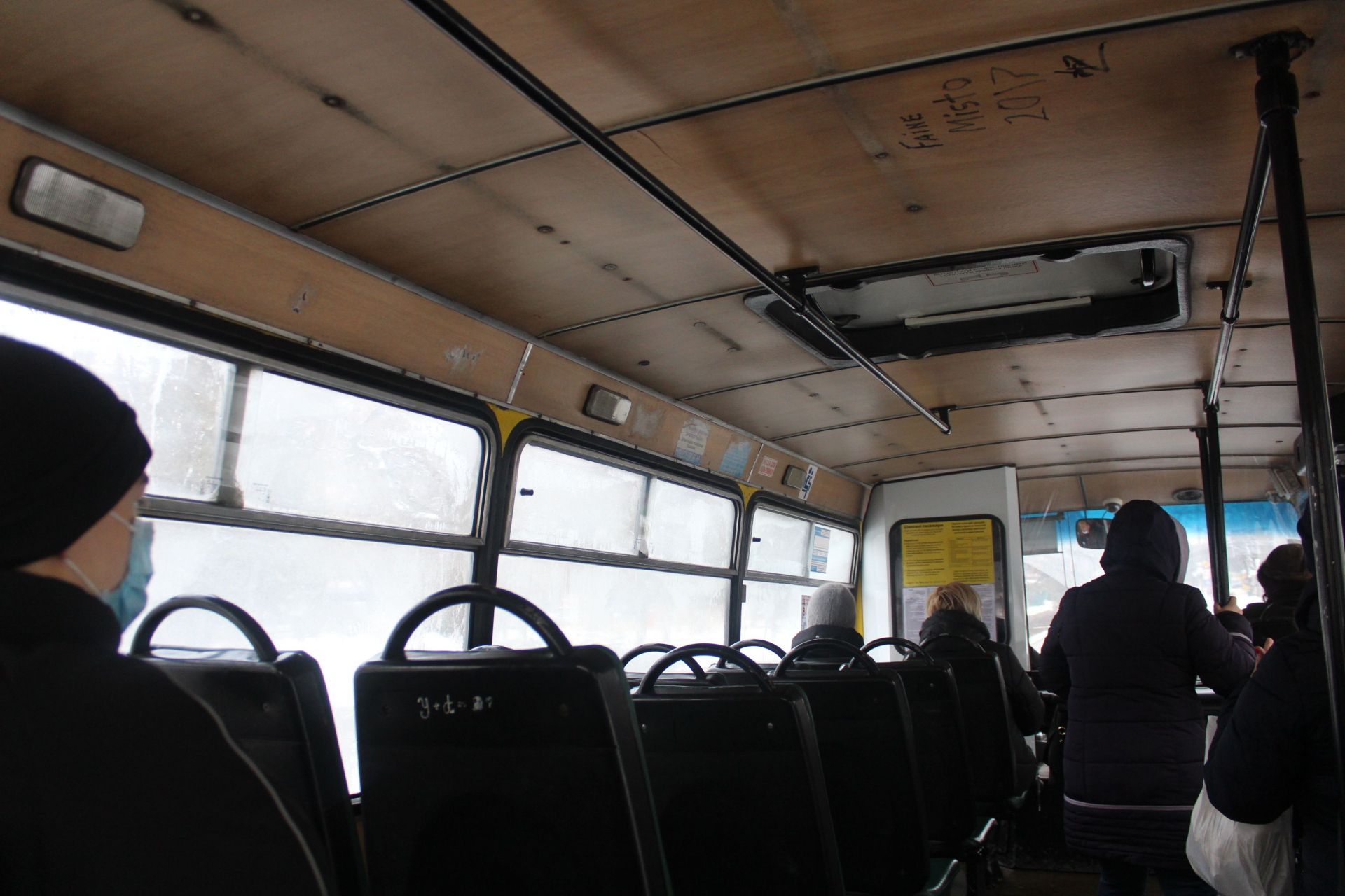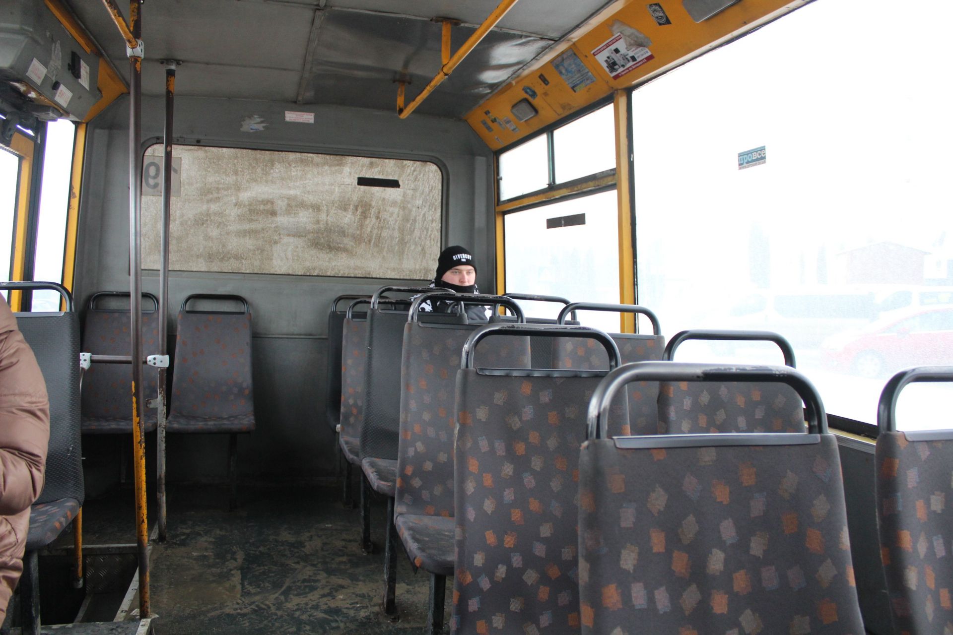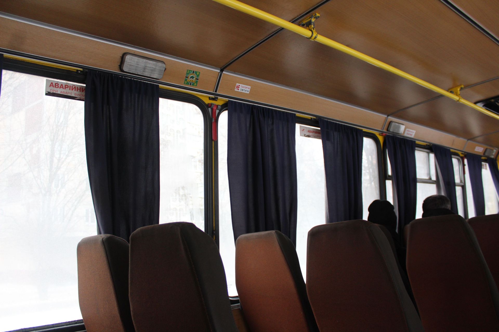 Наступна маршрутка №15. Тут вже не було реклами ні зовні, ні в середині. Обшивка сидінь вже стара, однак розірваної ми не помітили.