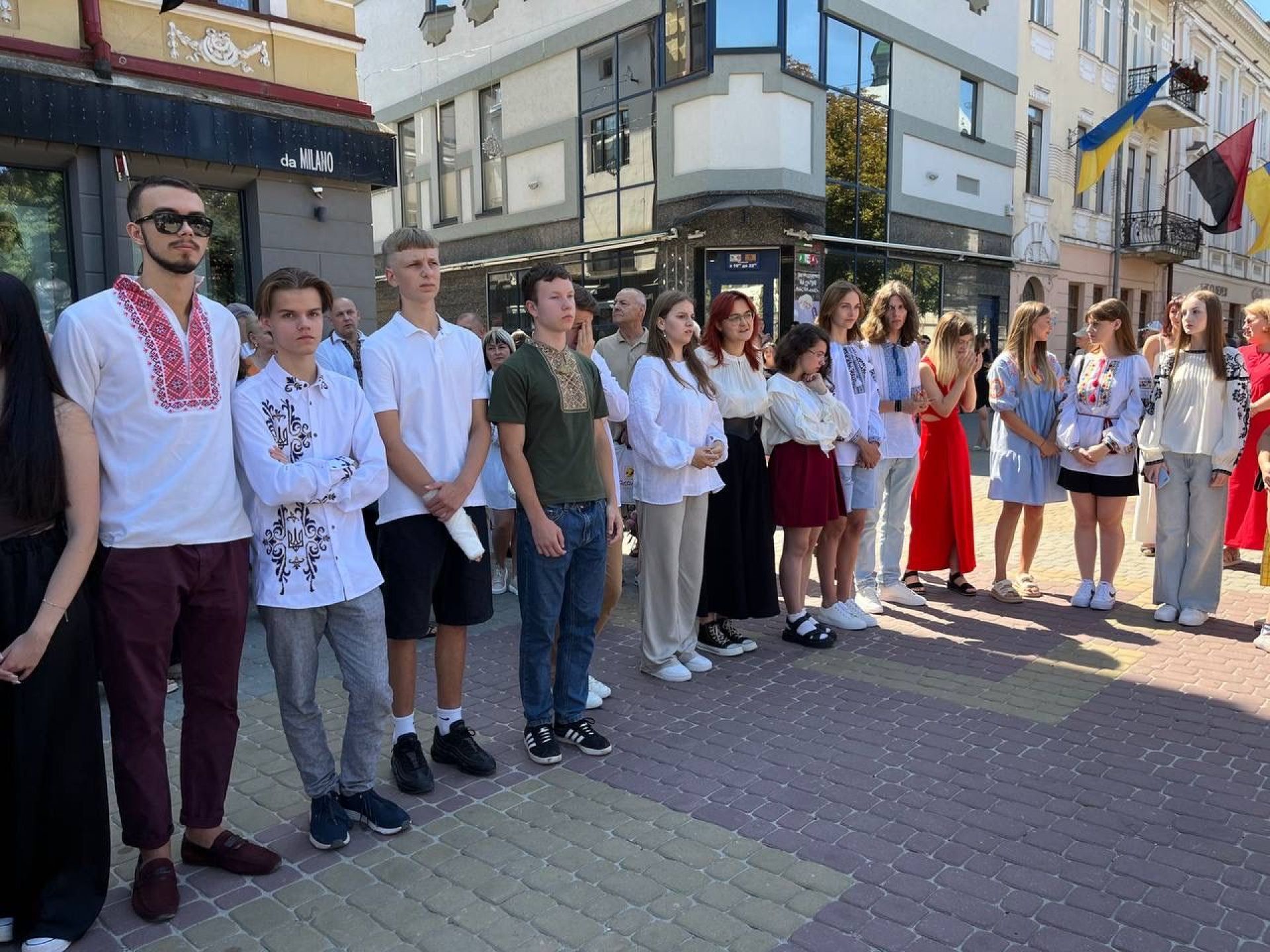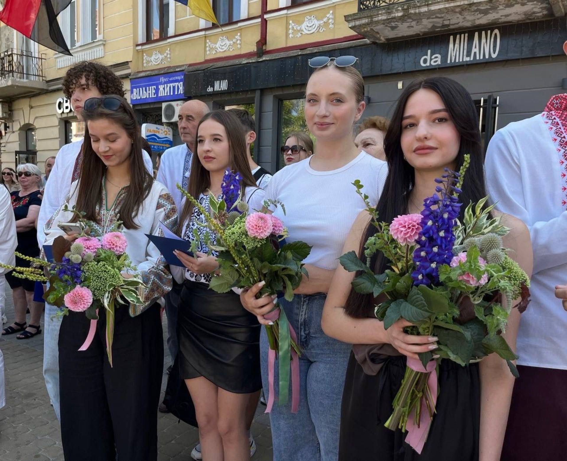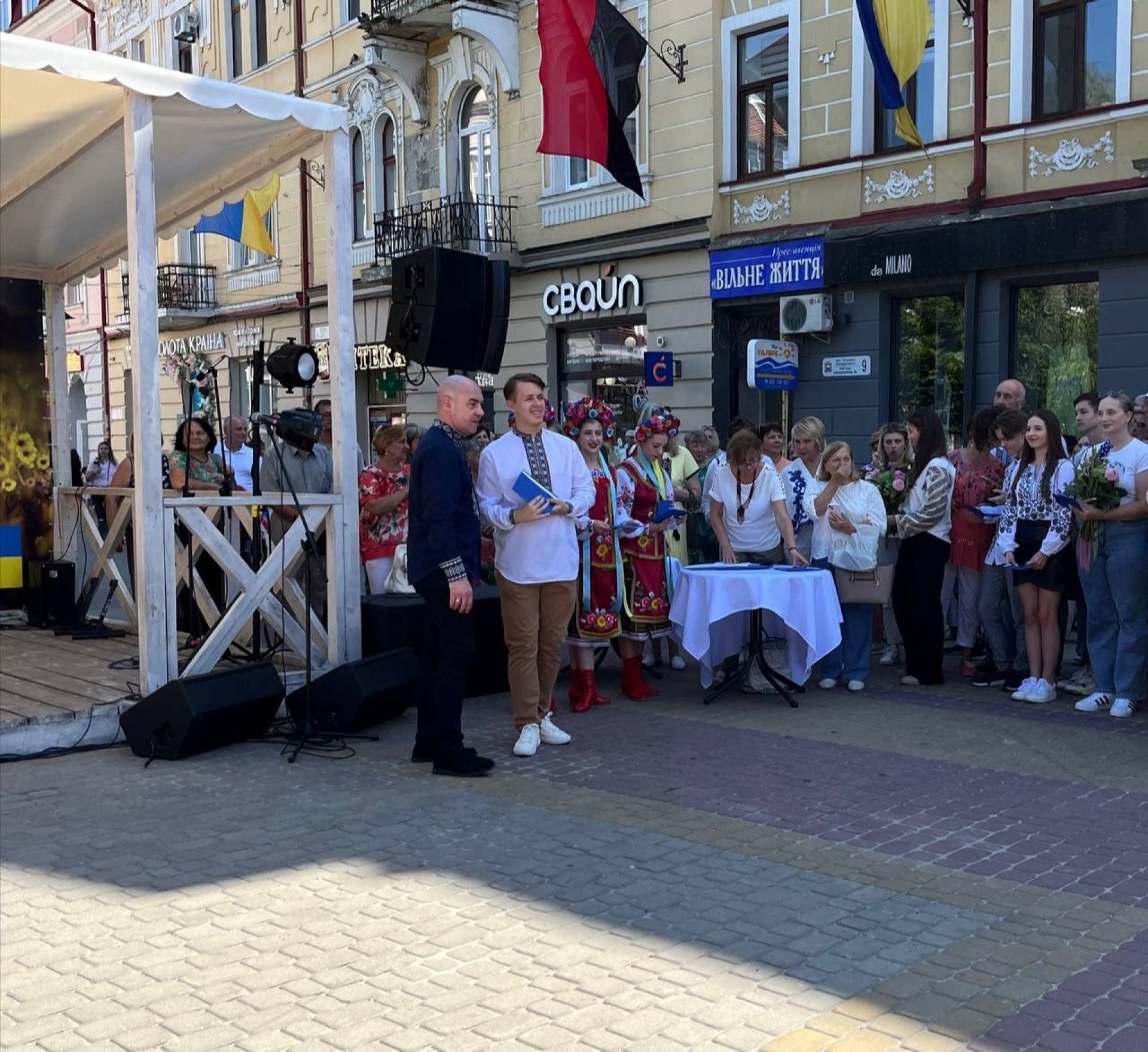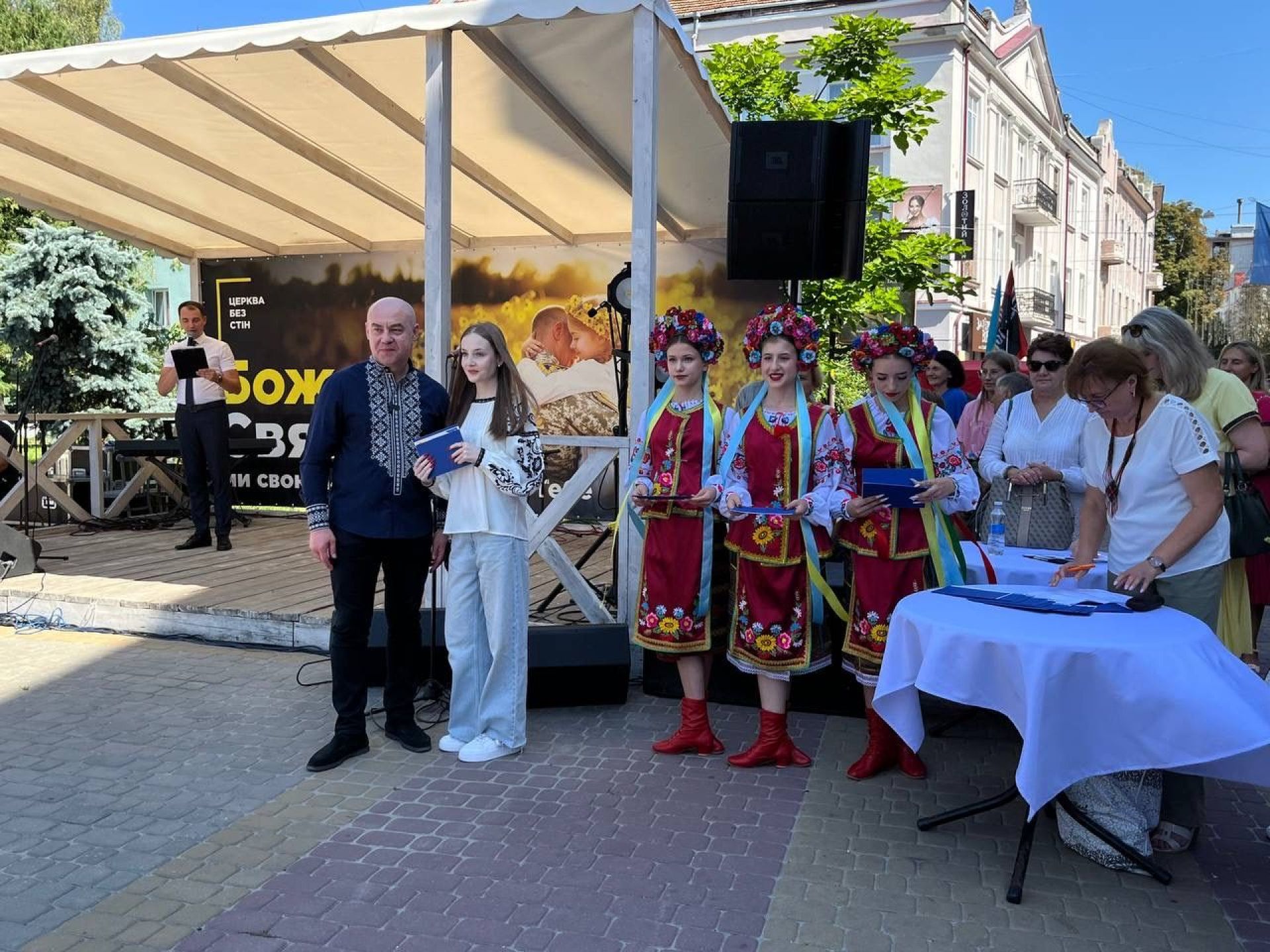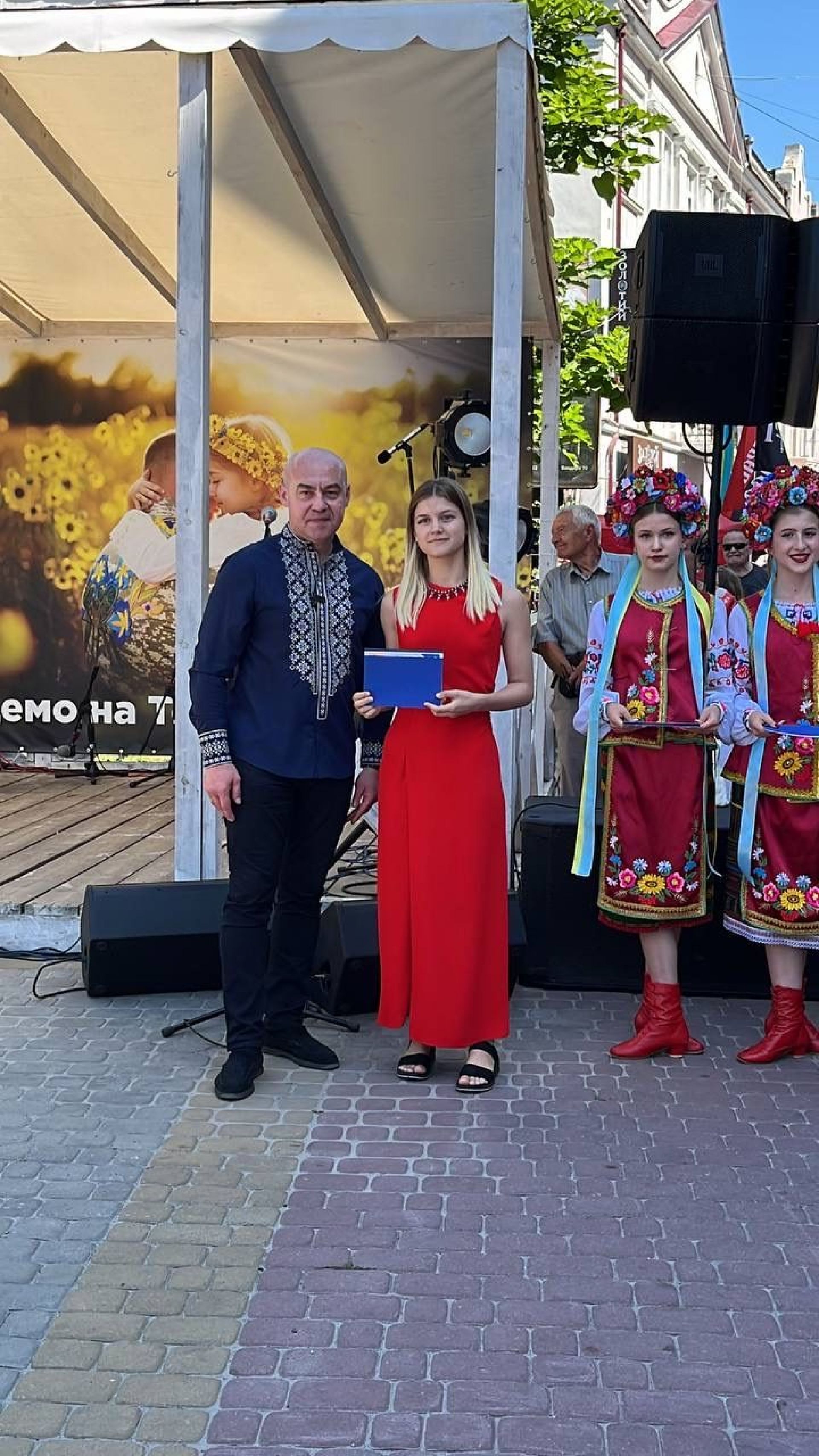 — Найбільша нагорода для вчителя — його успішні випускники. Вони — його гордість, надія і радість у завтрашньому дні та відбудові України. Раді вітати талановитих, розумних, наполегливих та працьовитих юних тернополян. Упродовж минулого навчального року саме ви продемонстрували високу мотивацію, наполегливість та відповідальність. Ви старанно навчалися і не лише у класах, а в укриттях під звуки сигналів повітряних тривог. Ви — гордість нашого Тернополя, — промовив ведучий.