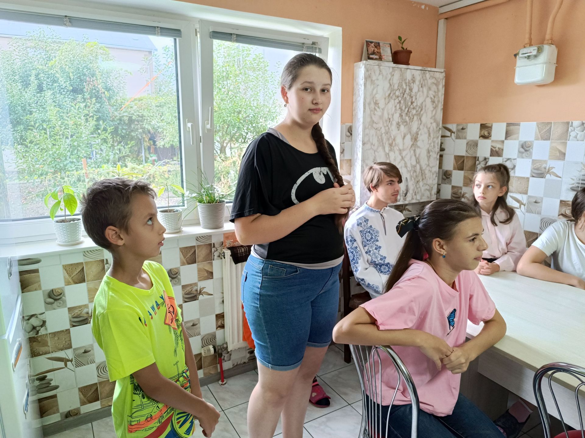 Перше, що кидається в очі, коли журналісти зайшли на подвір’я, — живі квіти. Клумба об лаштована обабіч газону зі скошеною травою. Чистота і порядок. Заходимо до будинку — у ніс вдарив запах свіжозвареного борщу. У передпокої всюди квіти у великих горщиках і піаніно. Як з’ясувалось згодом, інструмент не просто так тут поставили. Більшість із дітей займаються і музикою, і танцями, і відвідують ще купу гуртків.