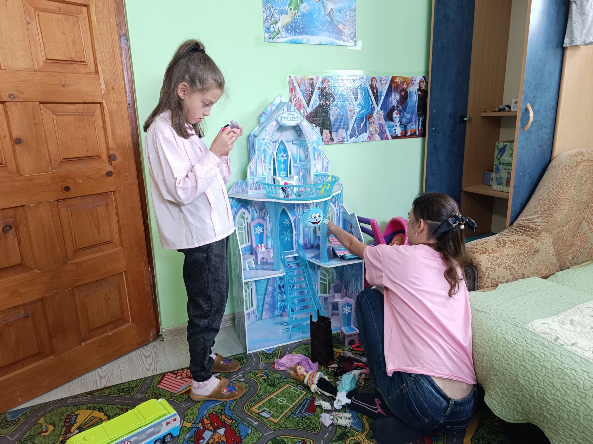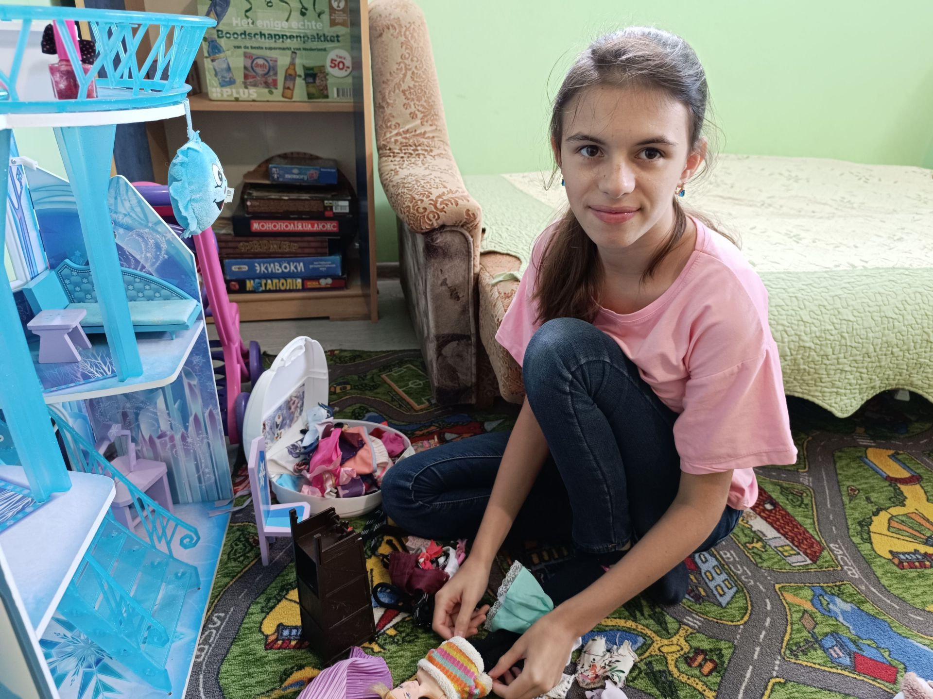 Вероніці Мухіній зараз 14, у будинок сімейного типу її забрали у 2019 році. З нею тут проживають ще двоє сестричок і братик. Сніжані Штихно 13, коли вона потрапила до цього будинку сімейного типу, їй було 8. Її сестричці Валерії зараз 9, коли Олена забрала її до себе, було 4 рочки. Наймолодший у цій родині рідний братик дівчаток — Сашко, йому зараз сім років, а коли потрапив до цієї родини, було 2,8 р.