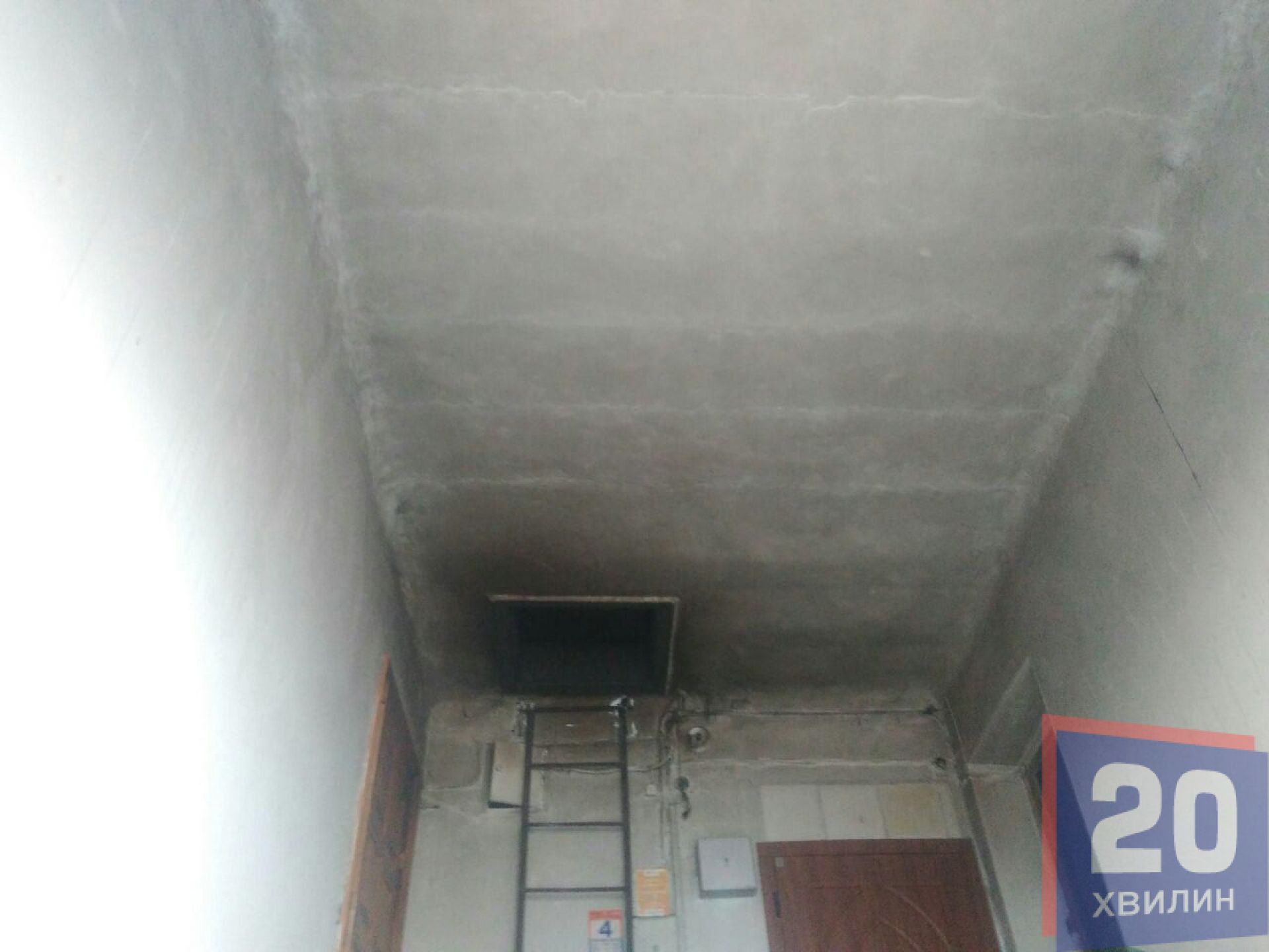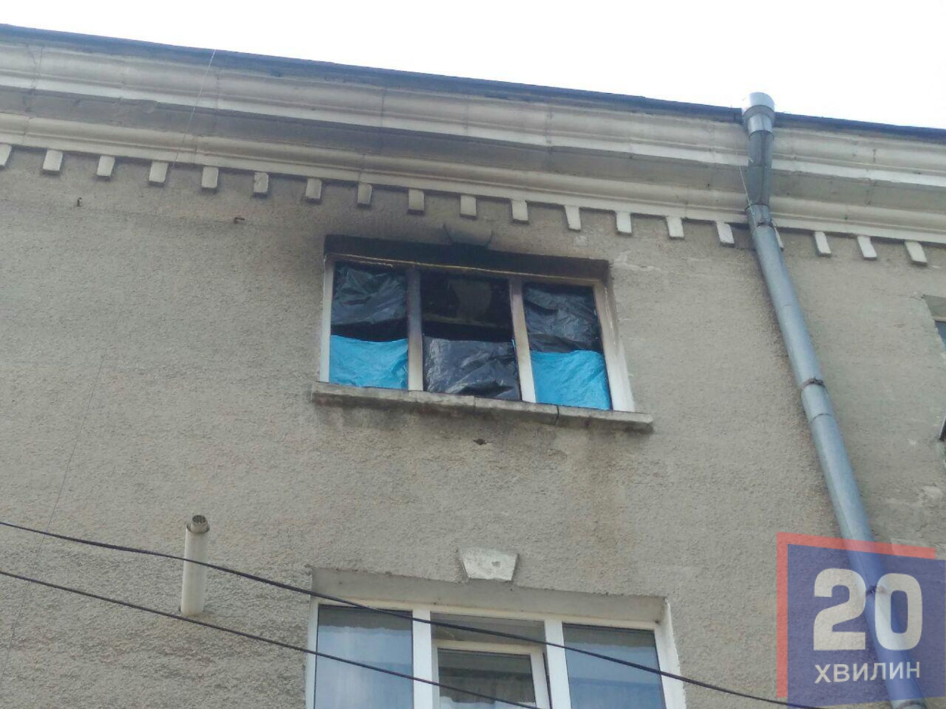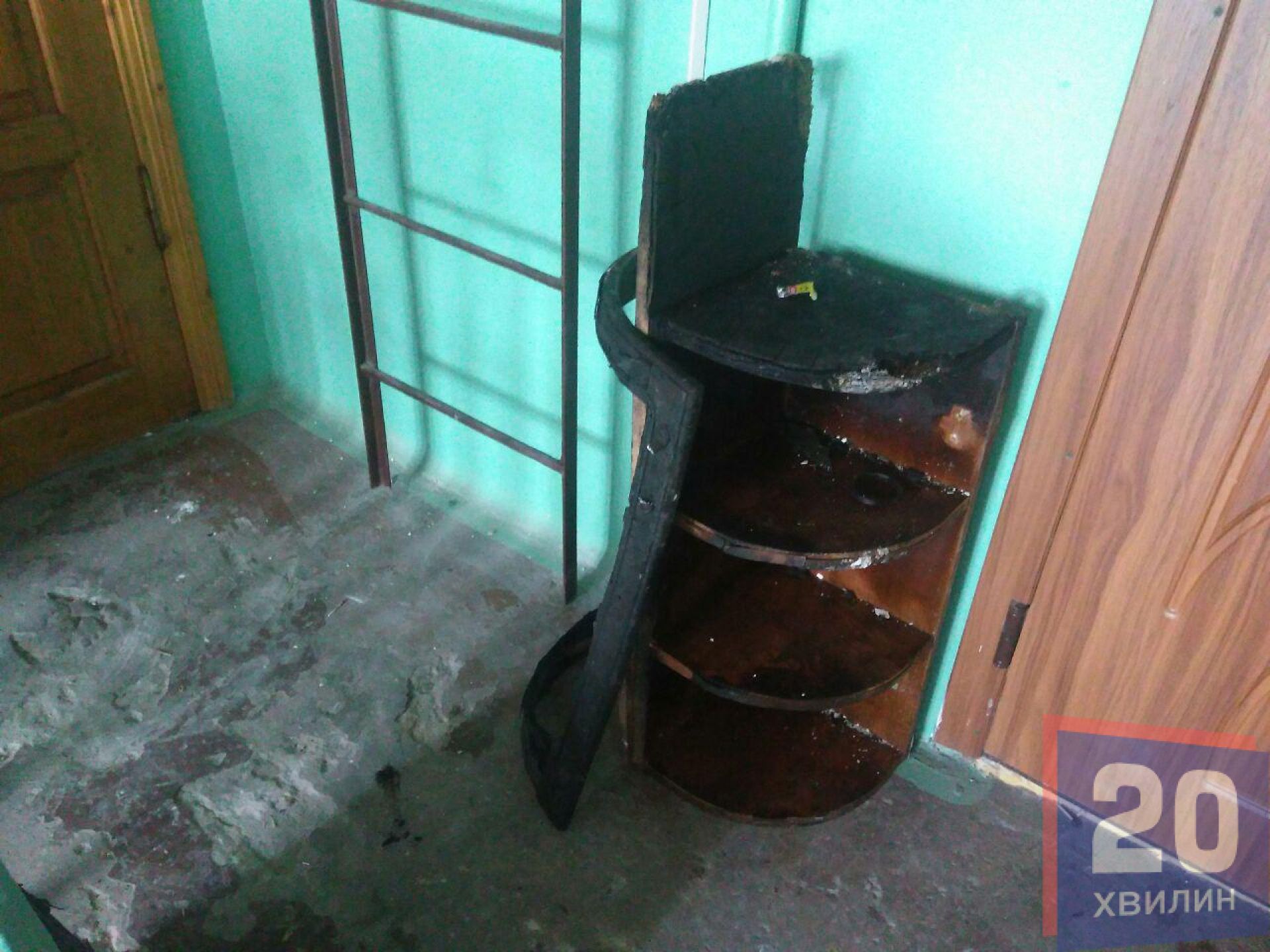 Вікно квартири вибите та почорніле від сажі. Його заклеїли целофаном. У під’їзді, як помітив журналіст, ще залишився стійкий запах горіння. Стеля четвертого поверху почорніла від диму. Господарі квартири, де трапилась пожежа, виносили зіпсовані речі.