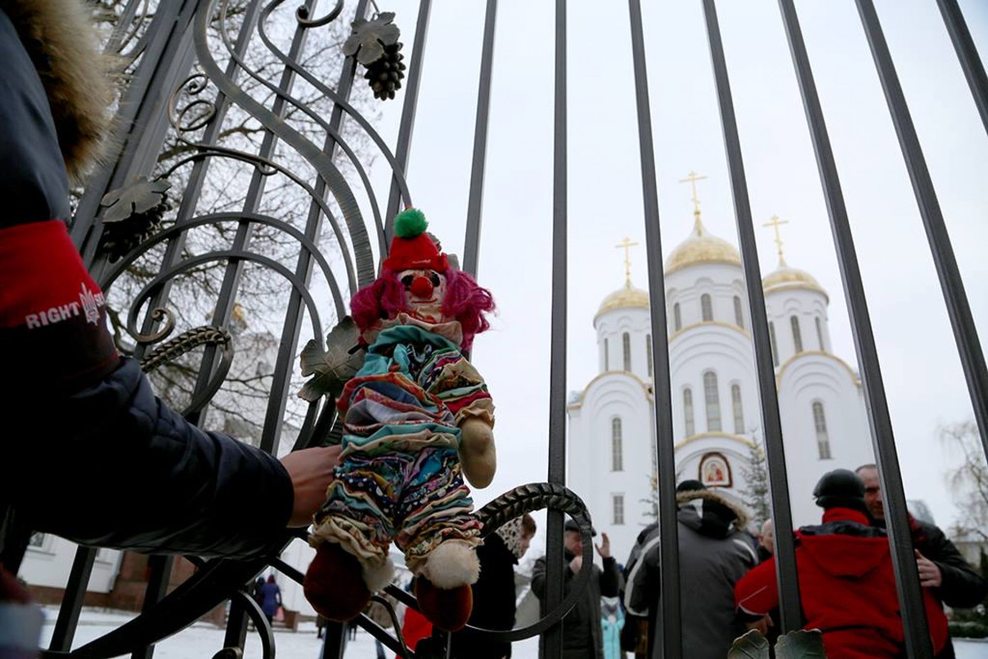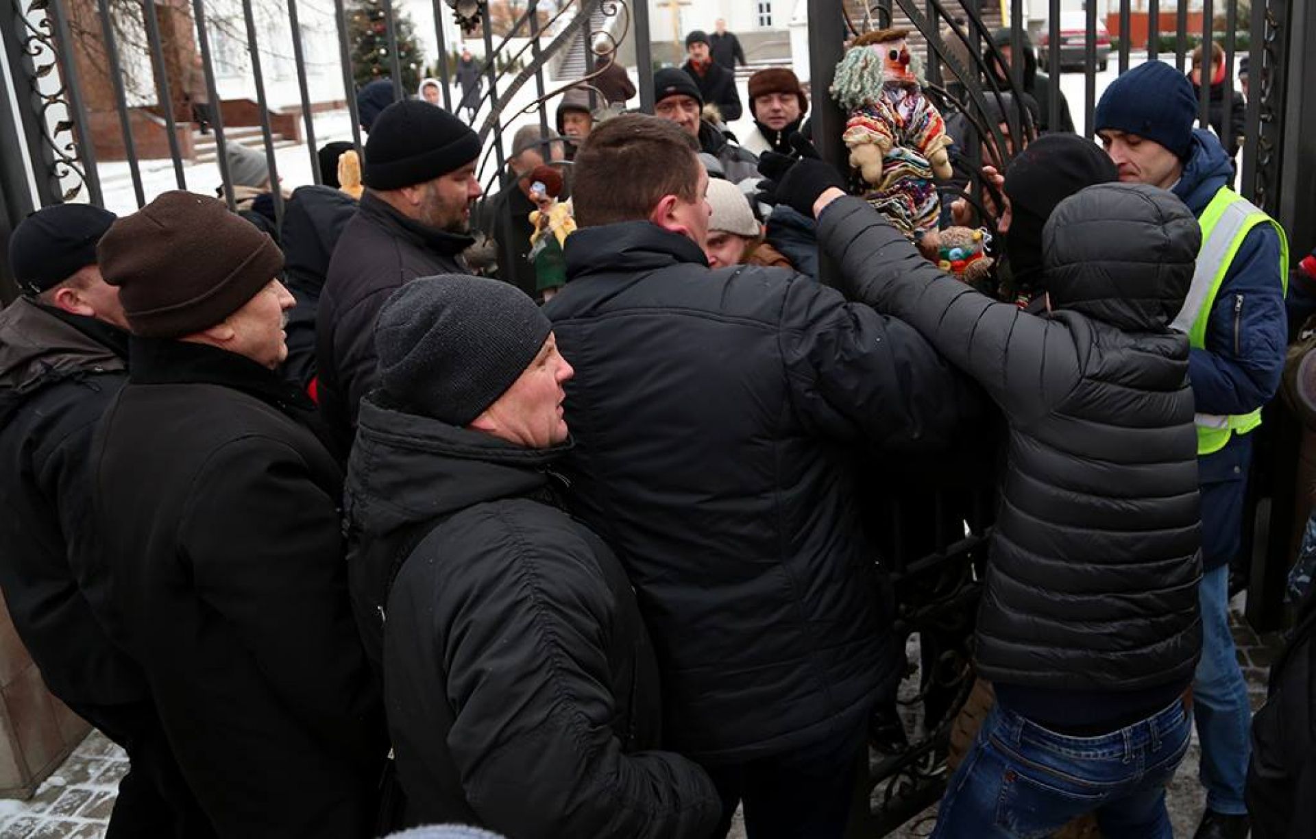 - Наша акція була інформативною, - каже Назар Сарабун. - Ми прийшли з іграшками, як в інших містах. Ми спершу хотіли заколядувати, хотіли провести мирну акцію, але монахи почали нас виштовхувати. Нас не пустили навіть на територію храму.