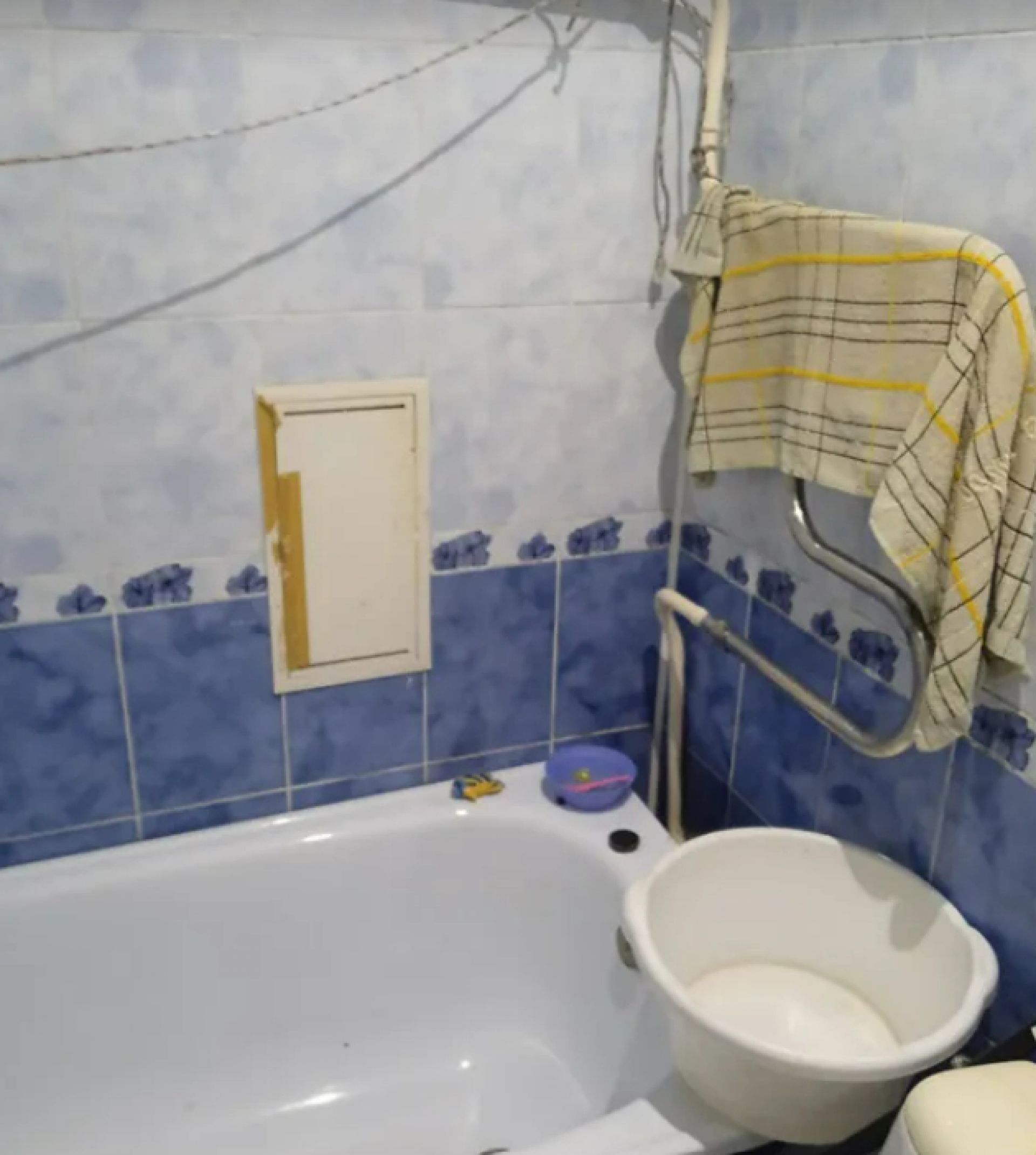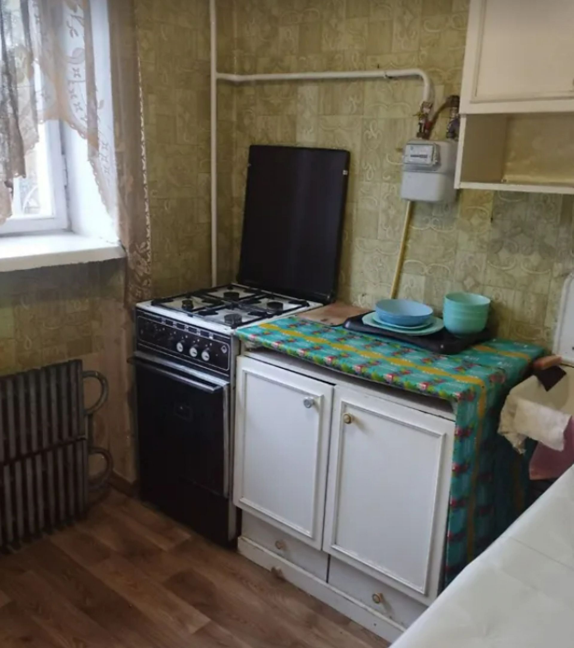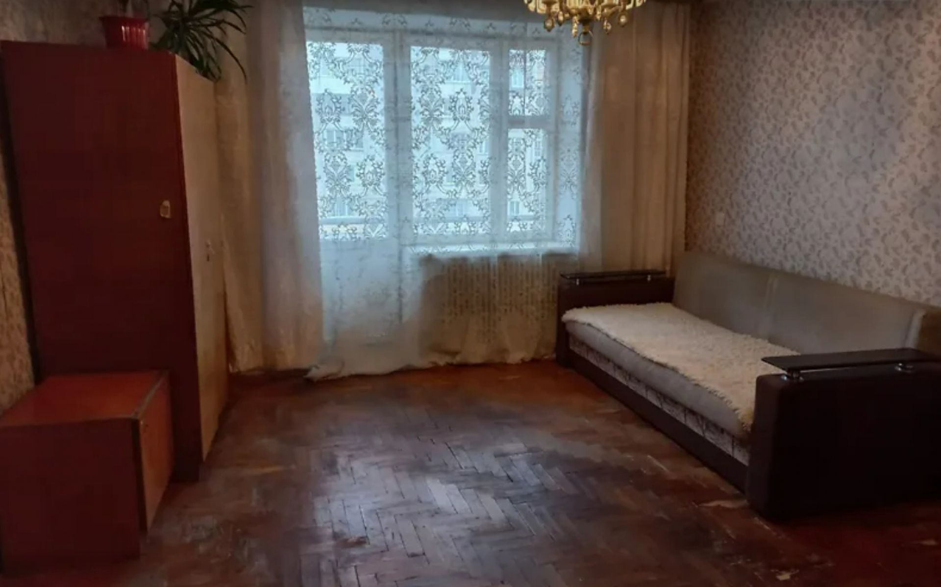 4 990 гривень коштує квартира площею 34 м² на проспекті Злуки. Є базові меблі та побутова техніка, зокрема пральна машина та холодильник. Опалення — централізоване, наявність бойлера не вказана.
