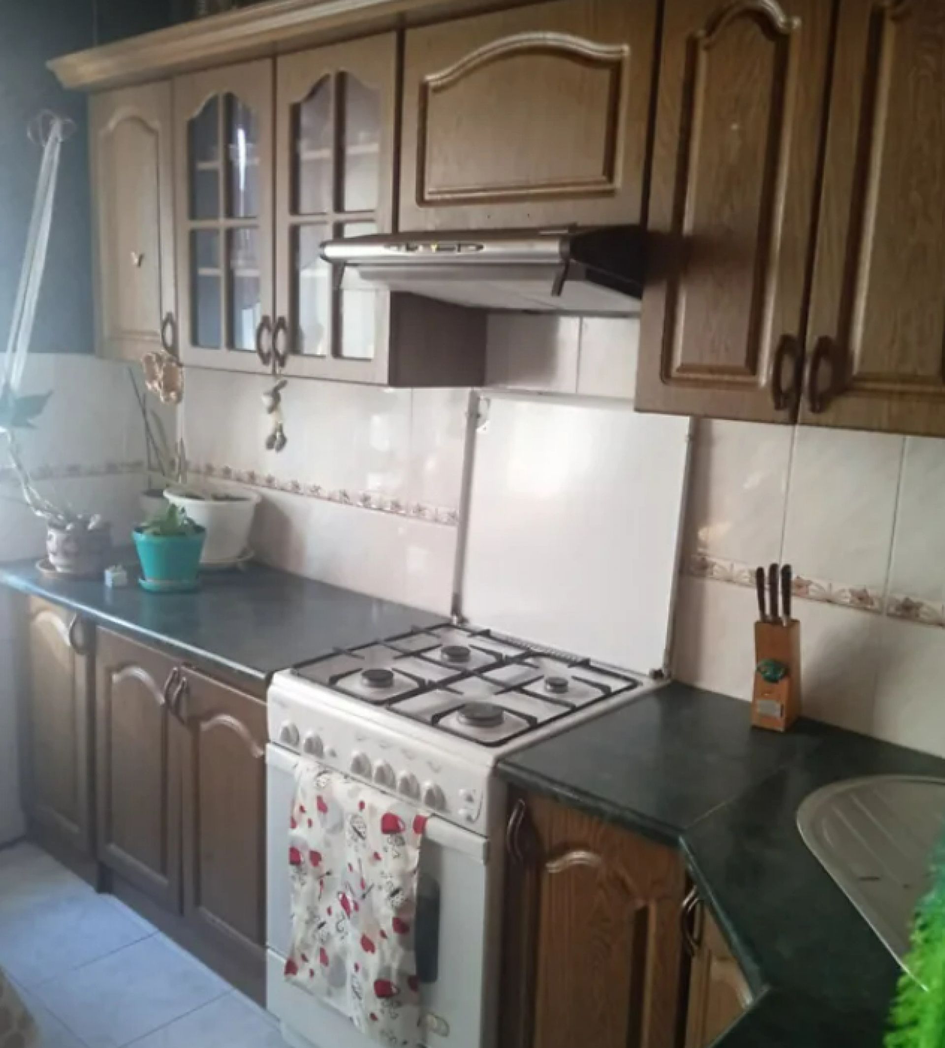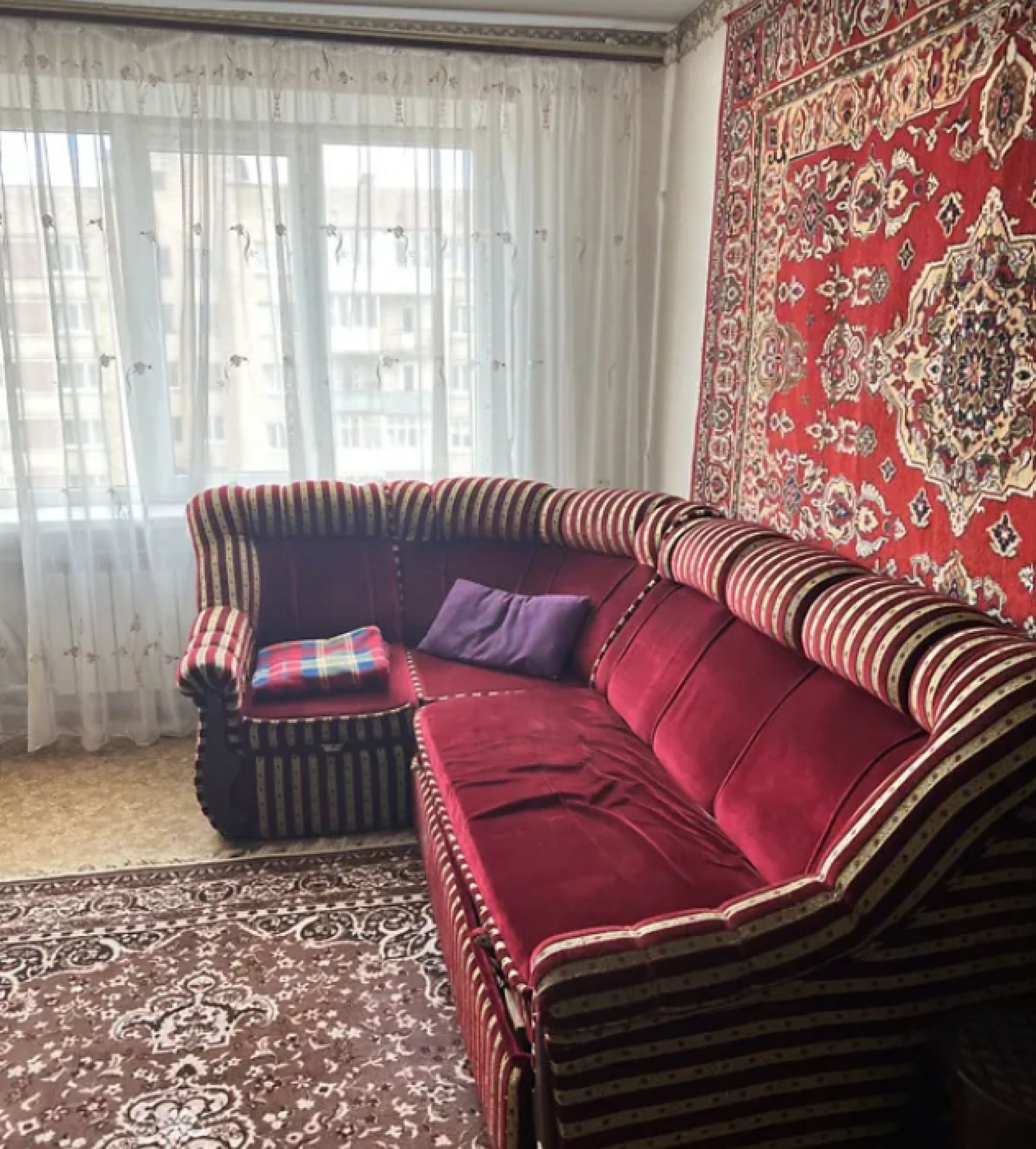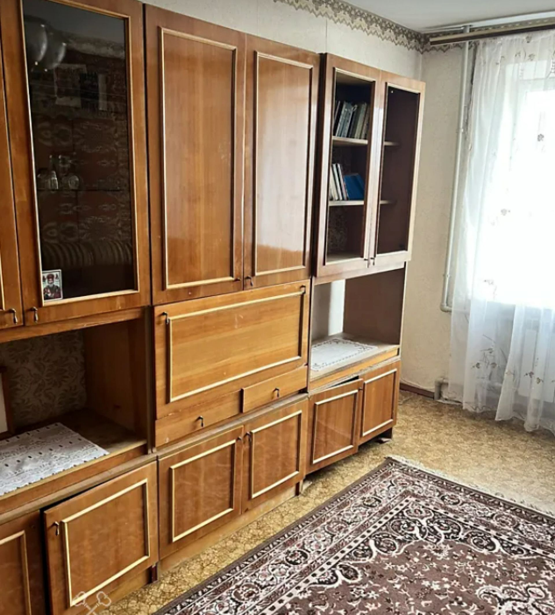 4 990 гривень коштує квартира площею 34 м² на проспекті Злуки. Є базові меблі та побутова техніка, зокрема пральна машина та холодильник. Опалення — централізоване, наявність бойлера не вказана.