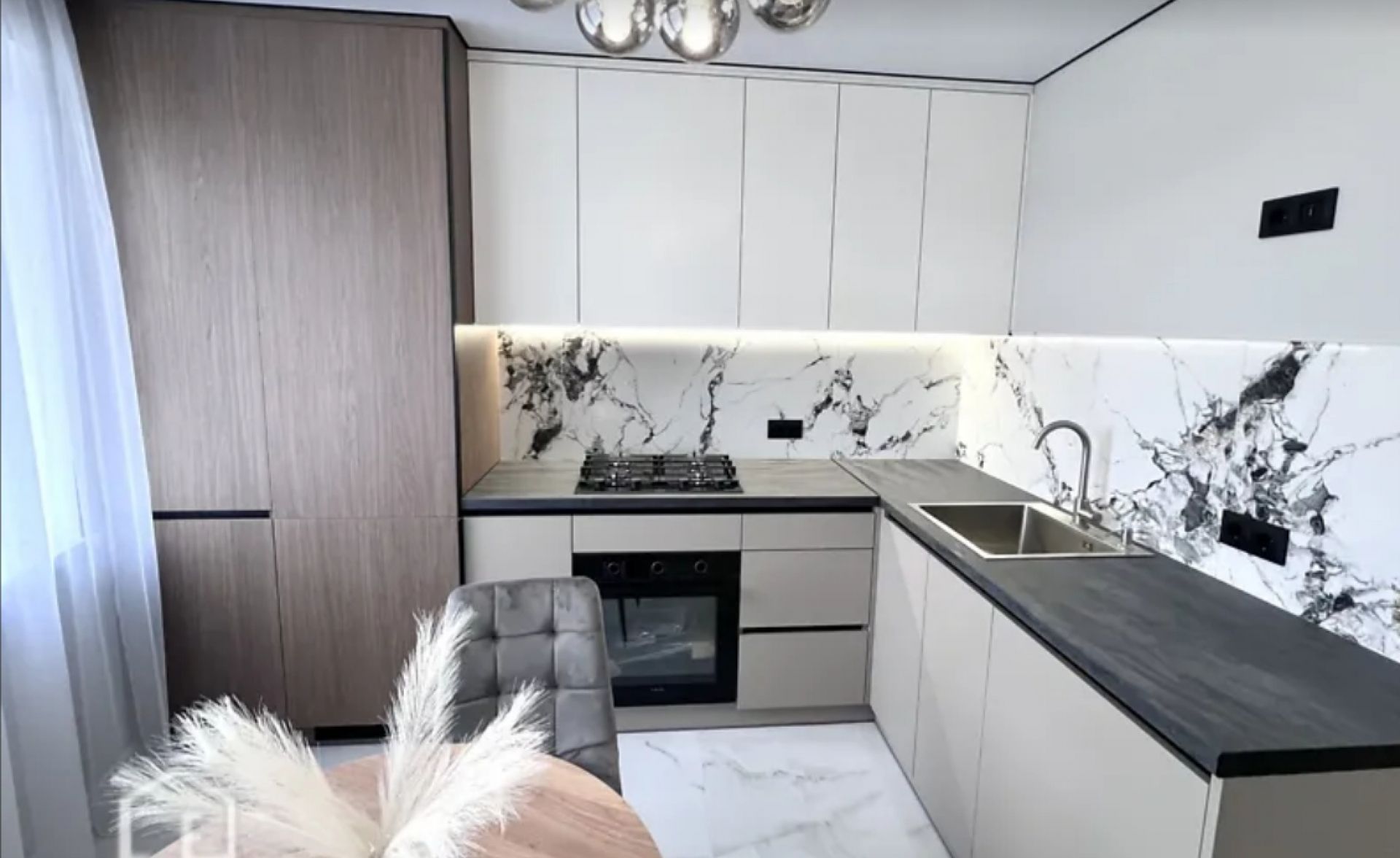 16 880 гривень щомісяця коштує однокімнатна квартира на вулиці Володимира Великого. Загальна площа – 38,1 м², розташована на восьмому поверсі 10-поверхового цегляного утепленого будинку. Планування: кухня-вітальня, спальня, балкон, санвузол. Дизайнерський ремонт у світлих тонах, використані якісні матеріали. Квартира повністю укомплектована новими меблями та побутовою технікою: холодильник, пральна машина, телевізор, витяжка.