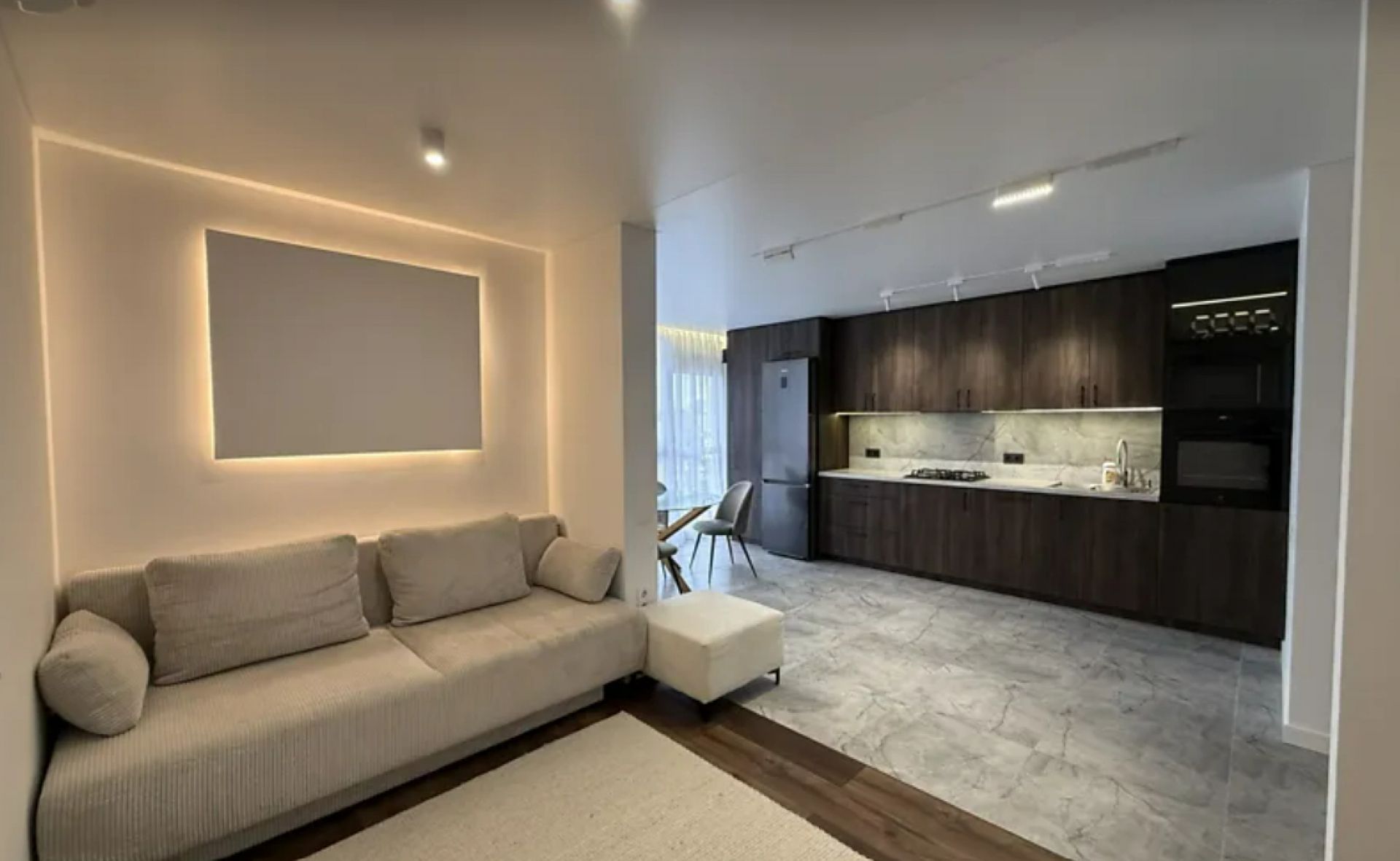 У новобудові на вулиці Тарнавського оренда квартири обійдеться у 18 146 гривень. Загальна площа – 43 м², сучасний ремонт, меблі та техніка. Кухня повністю облаштована, має вихід на панорамну лоджію та кладову. Затишна спальня, вітальня з диваном і телевізором. Суміщений санвузол, пральна машина, тепла підлога, кондиціонер, індивідуальне опалення. Закритий двір із паркомісцями. Це перша оренда квартири.