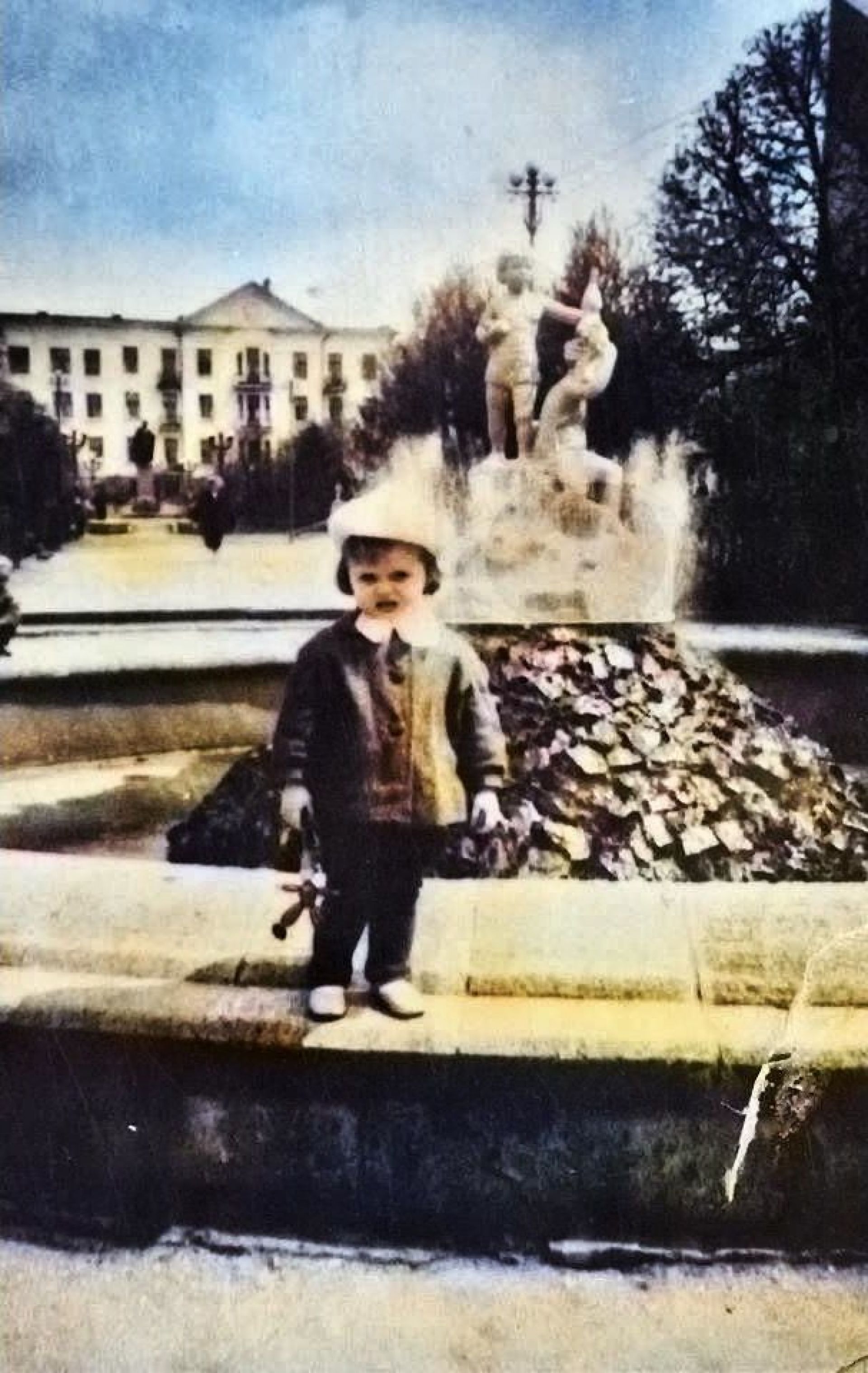 Цей фонтан був у сквері Чорновола. Колись сквер був названий на честь Пушкіна. Позаду на фото можна побачити пам’ятник російському поету.