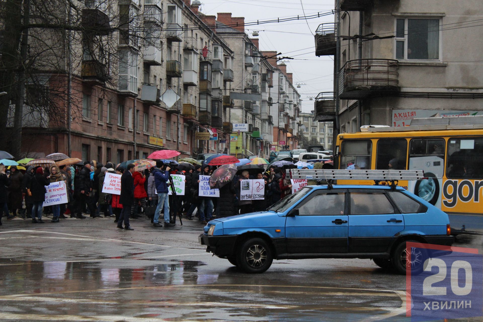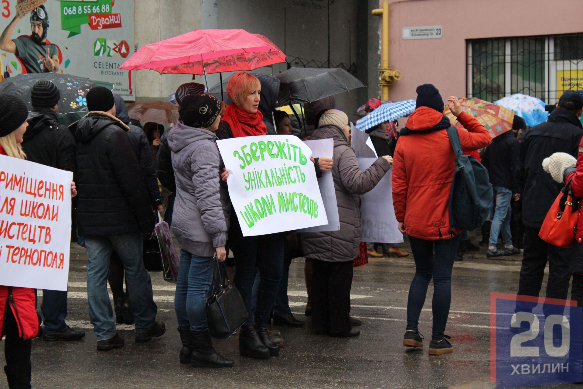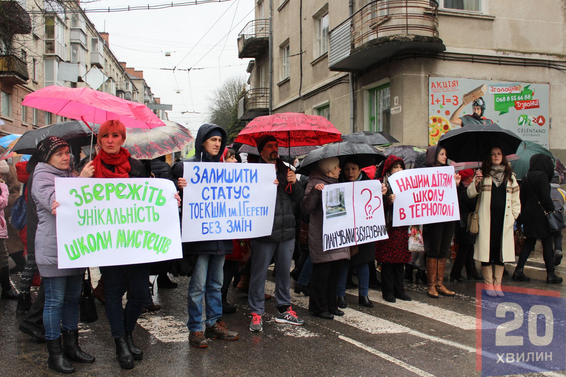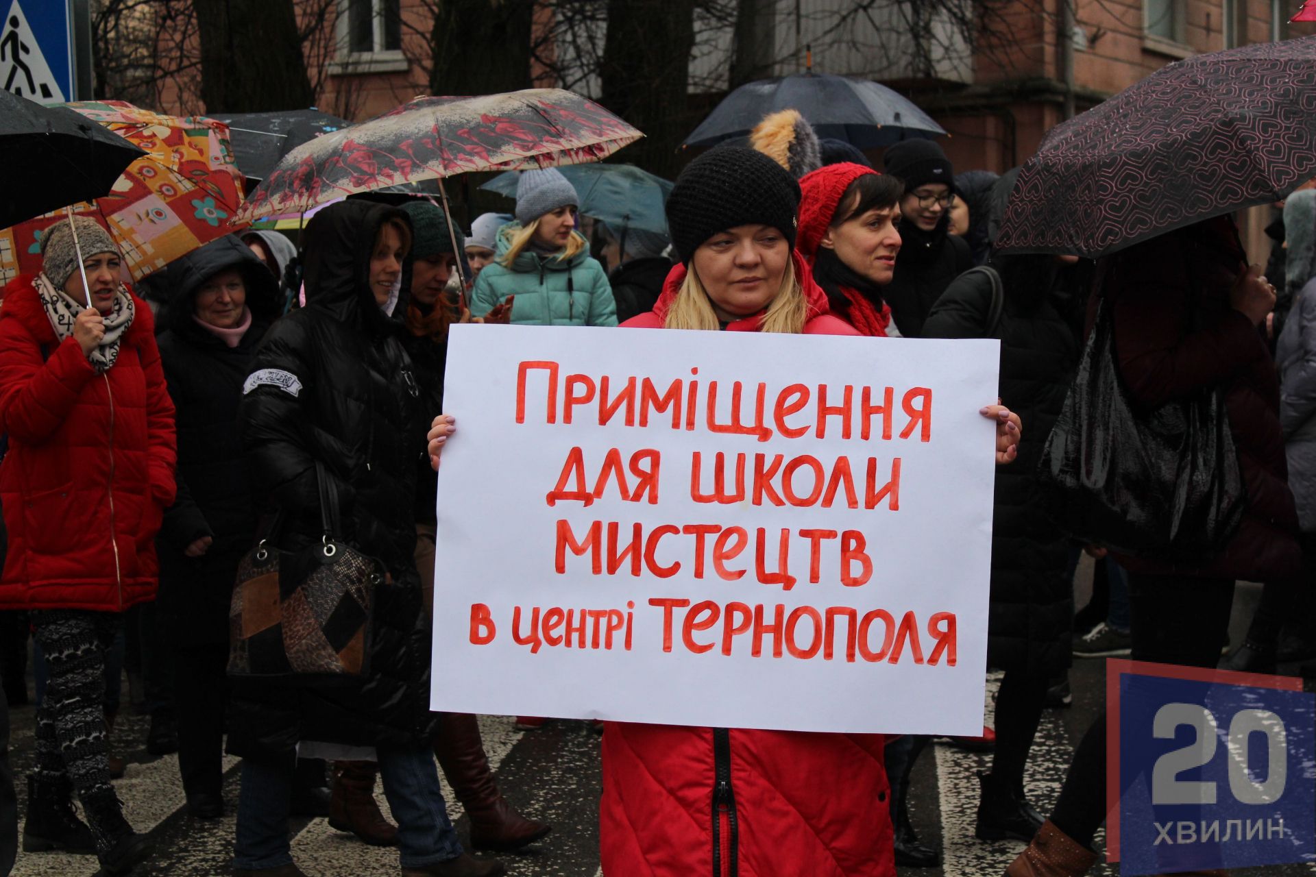Акцію “Не дамо закрити школу!” організували батьки, вчителі та учні школи мистецтв імені Ігоря Герети зранку 13 березня під обласною радою. Спершу люди перекрили дорогу, потім пішли під стіни "білого дому".