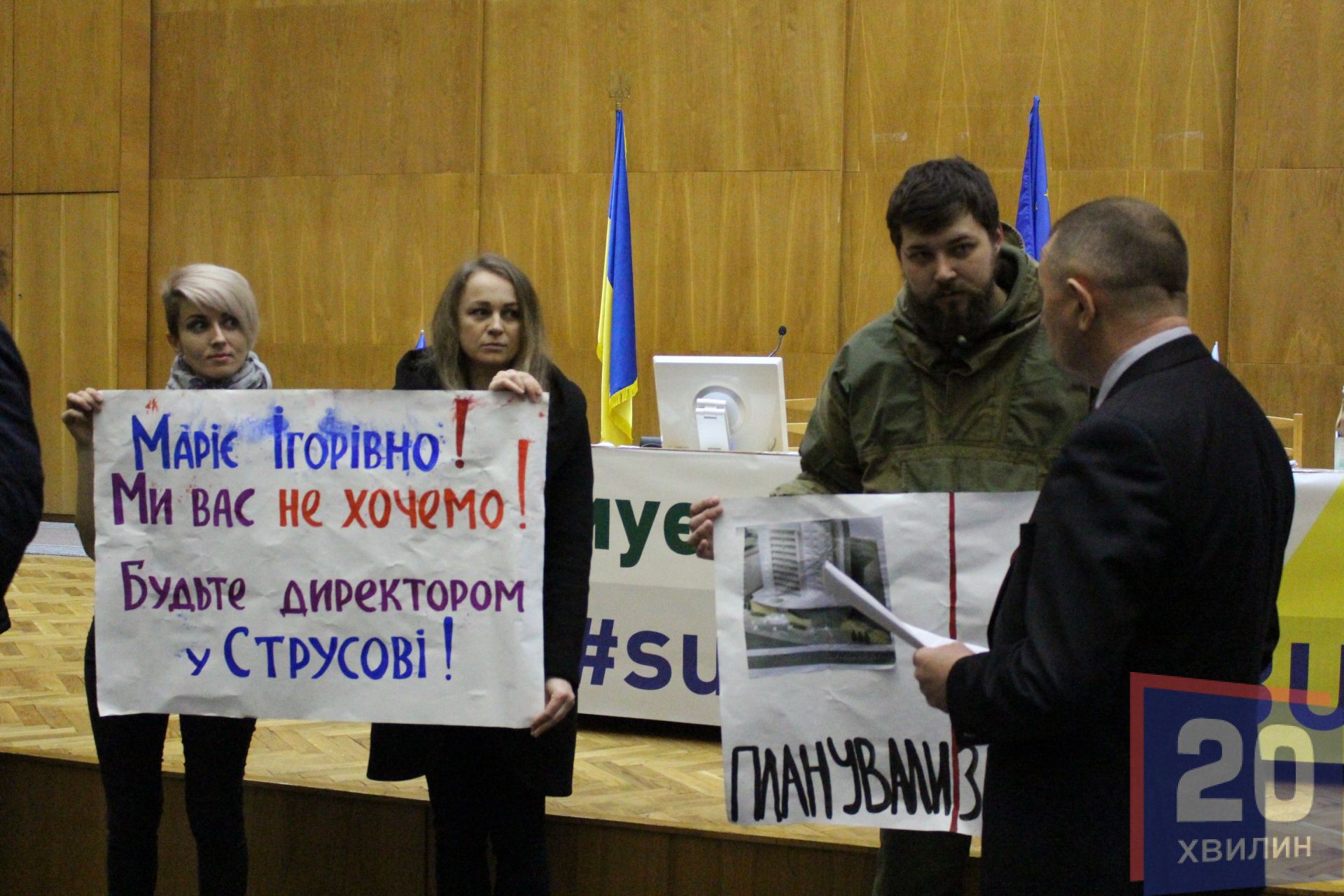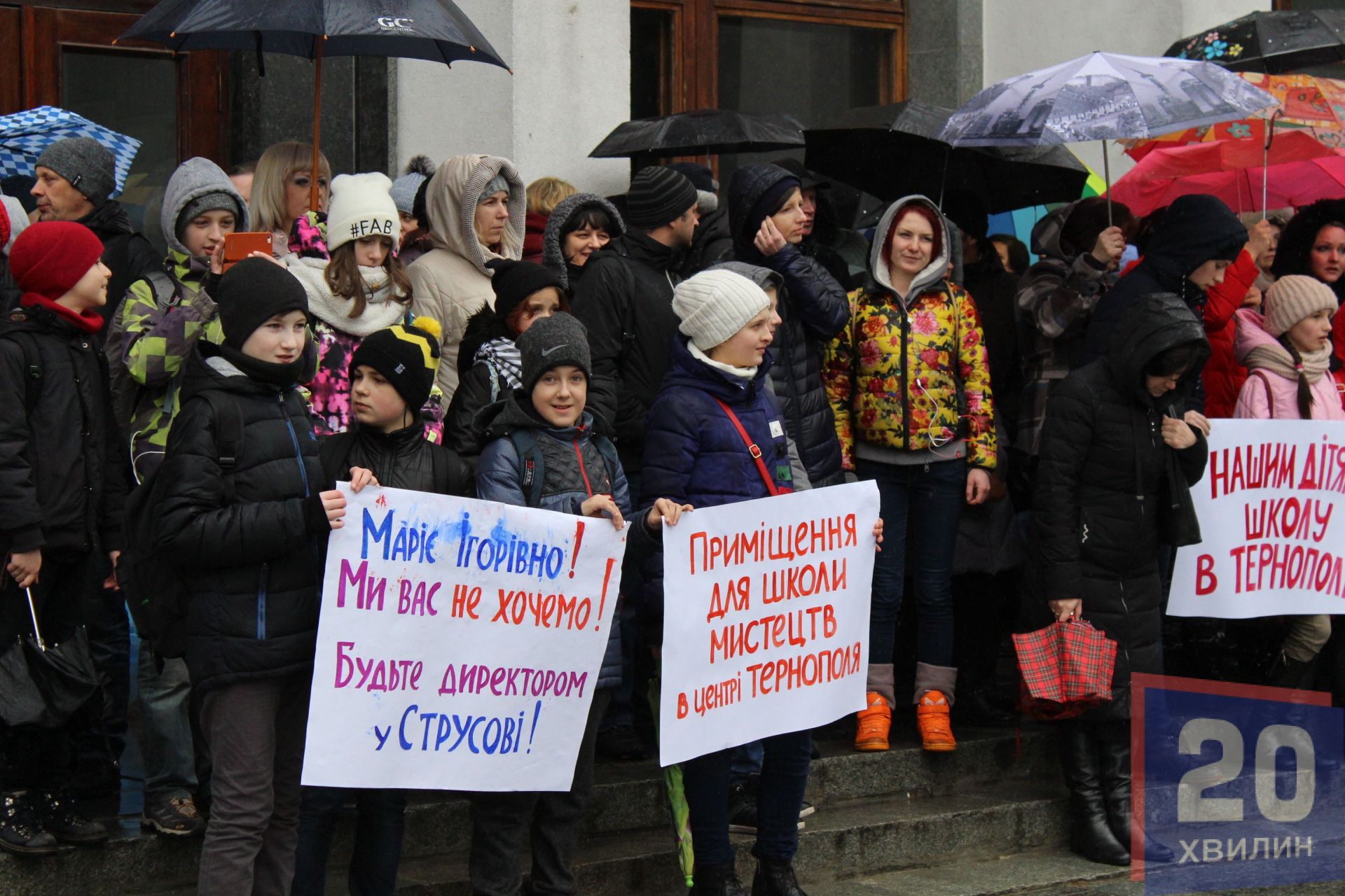 - 2 березня постійна комісія прийняла рішення, щоб розв'язати руки політикам і винести на сесію питання про реорганізацію, - кажуть протестувальники. - Сьогодні під неї попадають 270 шкіл в Україні. Такої школи, як наша більше ніде немає. На її базі працює мала академія мистецтв в Києві. Чому наша школа не має можливості працювати? Для чого нам їхати в Струсів? Туди їхати 30 кілометрів.
