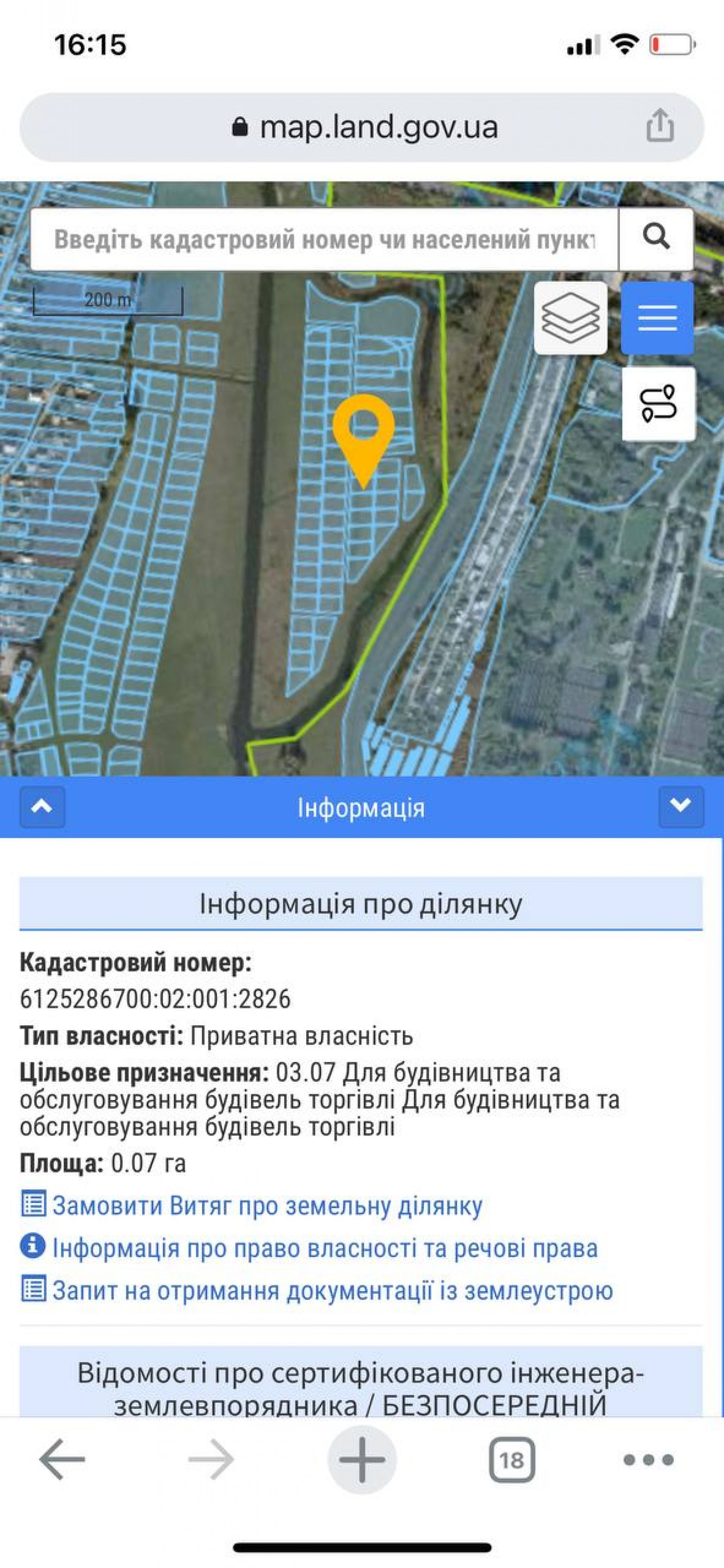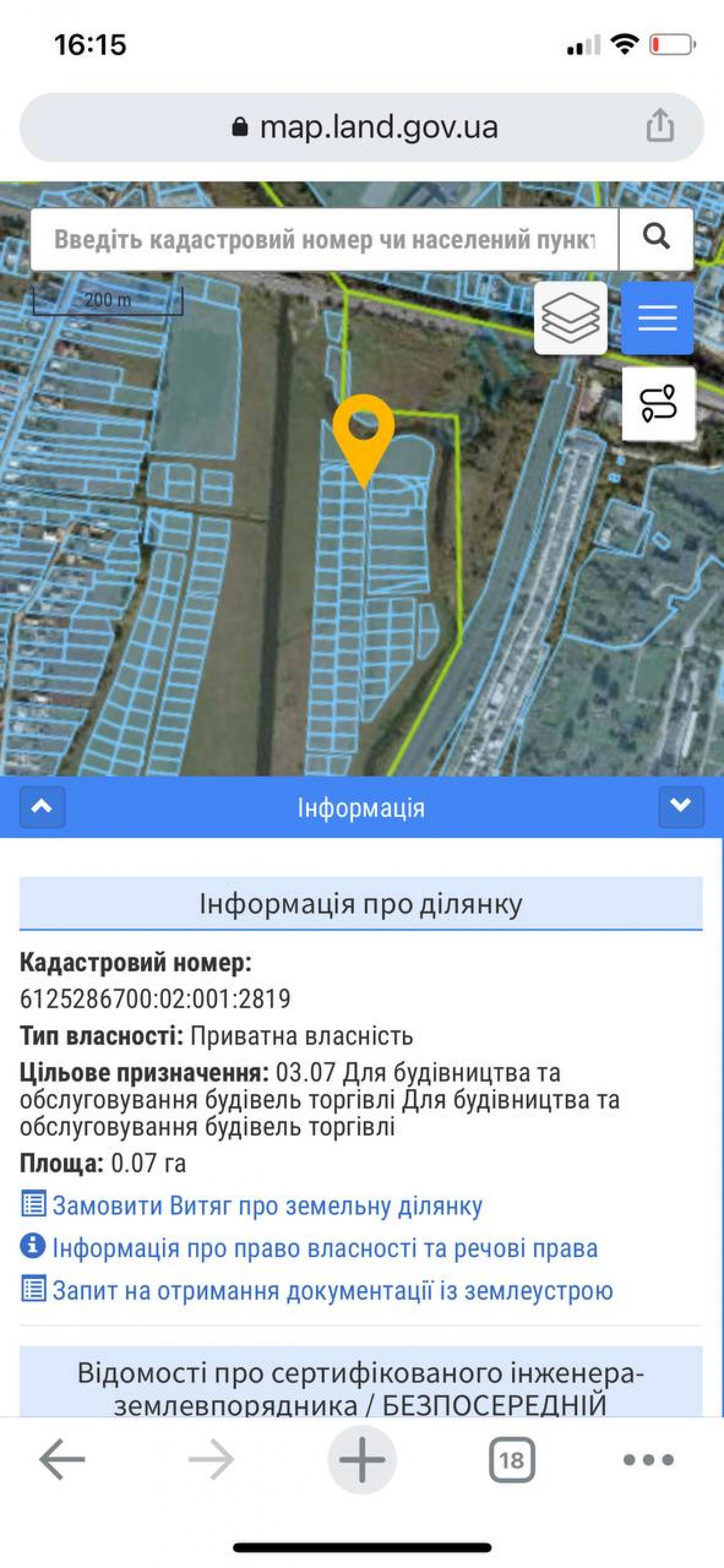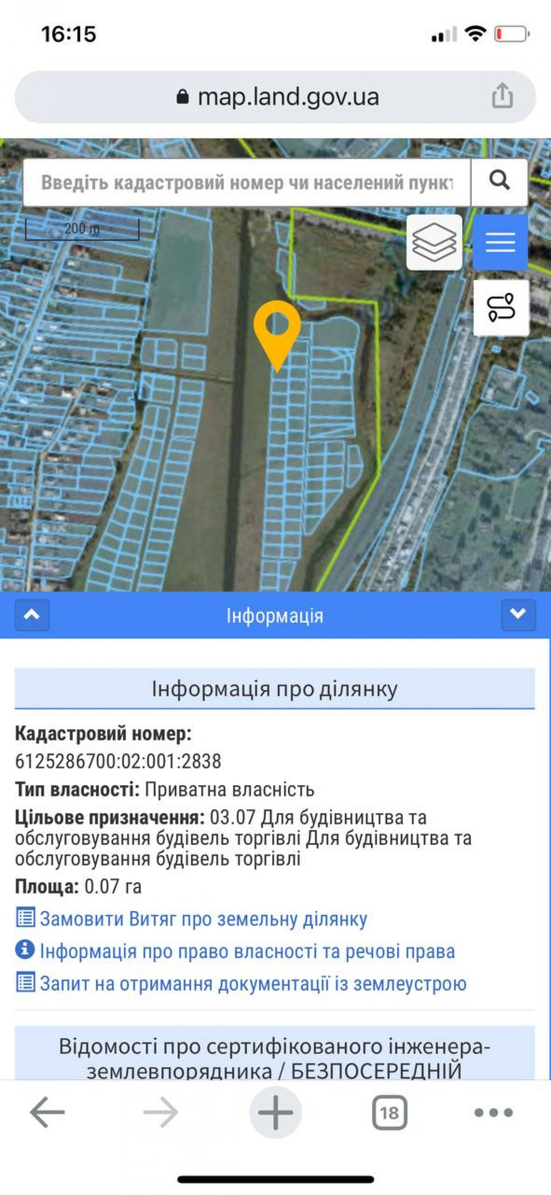 «20 хвилин» також перевірили призначення цих земельних ділянок у Державному земельному кадастрі – на Публічній кадастровій карті. !!!!!Як виявилось, не всі з 57 – комерційного призначення. Чимало з них є і для ведення особистого селянського господарства. Та й роки реєстрації далеко не всі 2009-го. Свідомо чи несвідомо заявники вводили журналістів в оману та хто і як отримав ці землі – питання інше, можливо, буде предметом розслідування в одному з наступних матеріалів. А поки на підтвердження наших слів – скріни інформації про деякі ділянки з кадастрової карти.