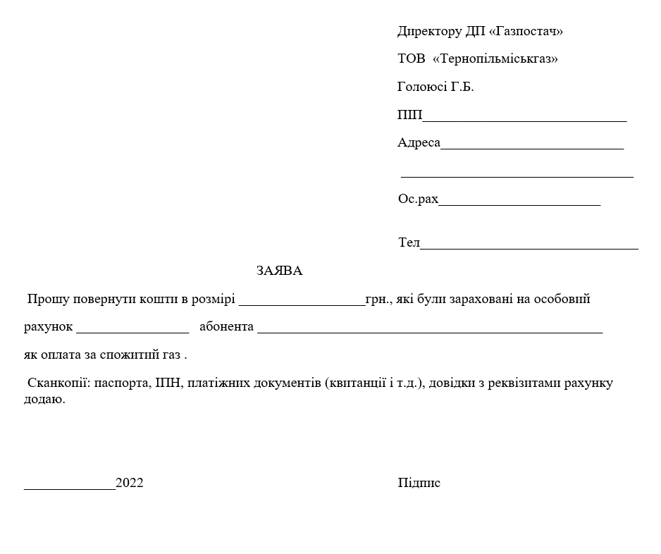 Тож якщо вам не вдалося завантажити заяву на сайті «Газпостачу», ви можете зробити це за нашим посиланням.