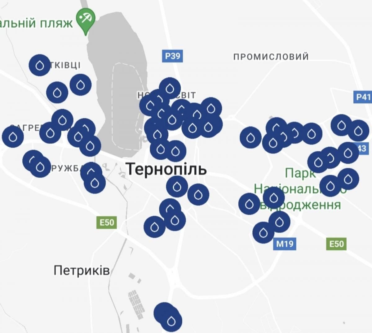 Наразі у місті у робочому стані є понад 50 колонок-качалок, 15 з них — осучаснені. Карта розташування колонок-качалок доступна в додатку «е-Тернопіль». Мапу колонок-качалок питної води можна знайти у розділі «Мапи» в додатку.