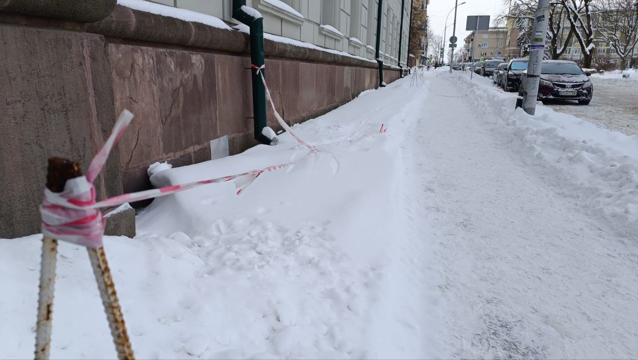 Біля деяких будівель розмістили сигнальну стрічку, яка сповіщає про можливу небезпеку. Але так не всюди.