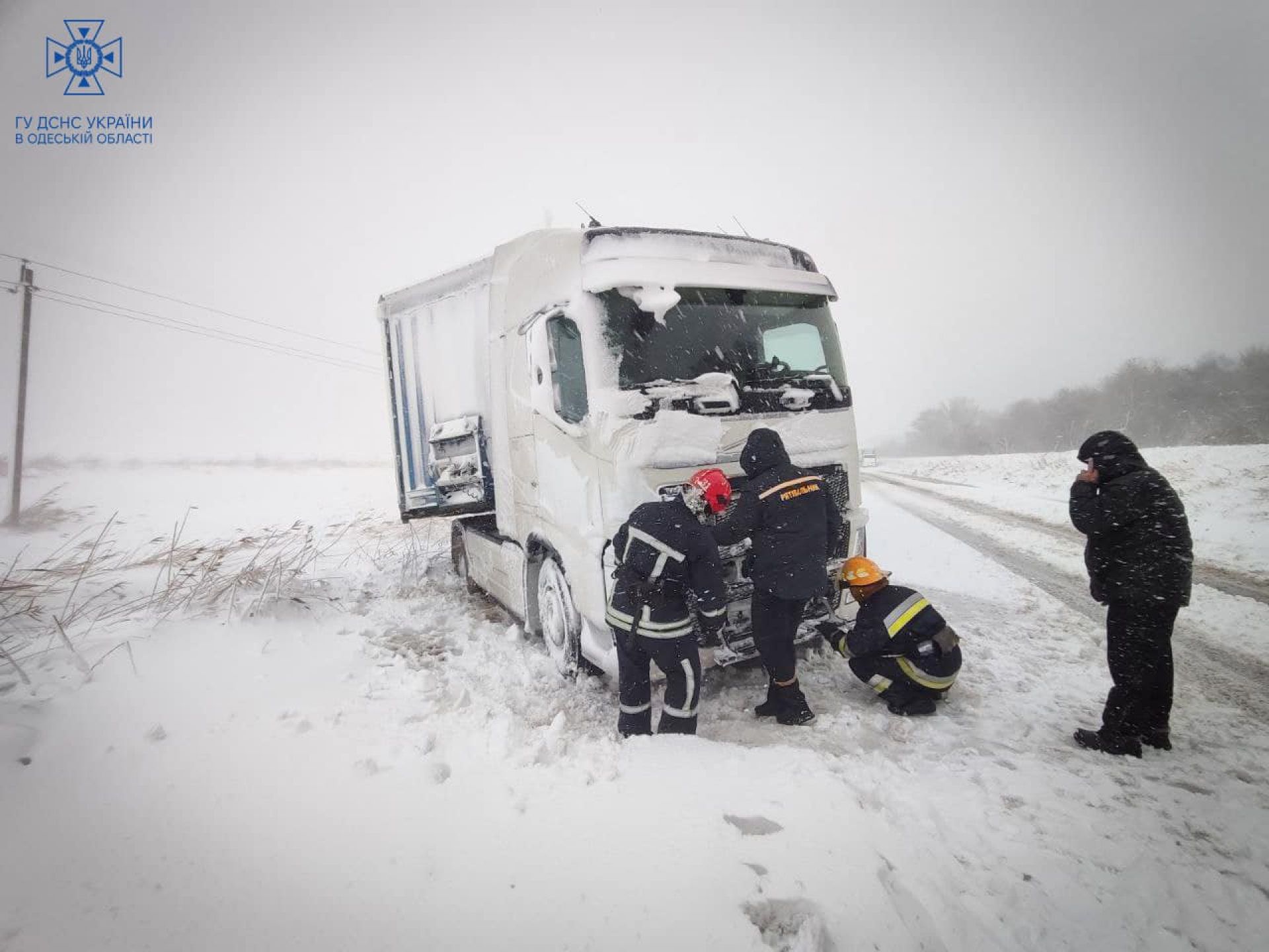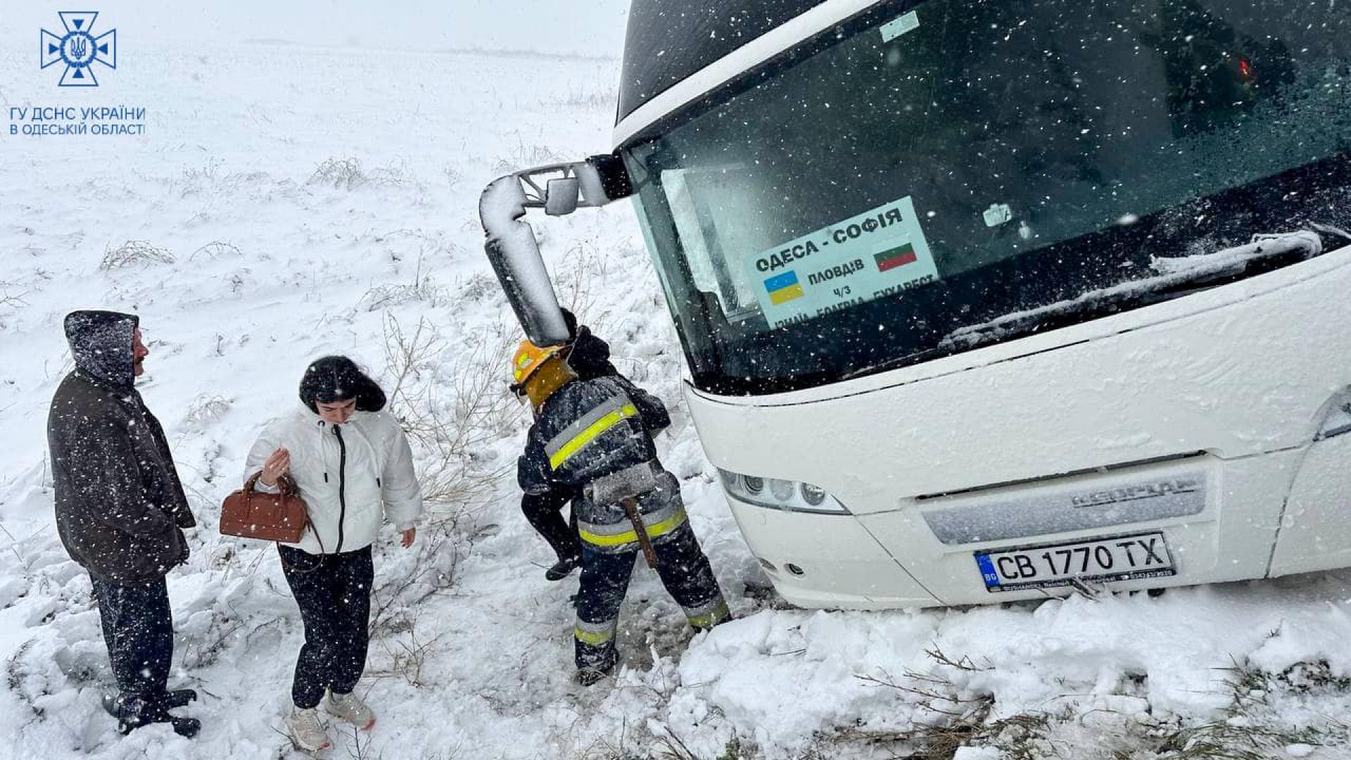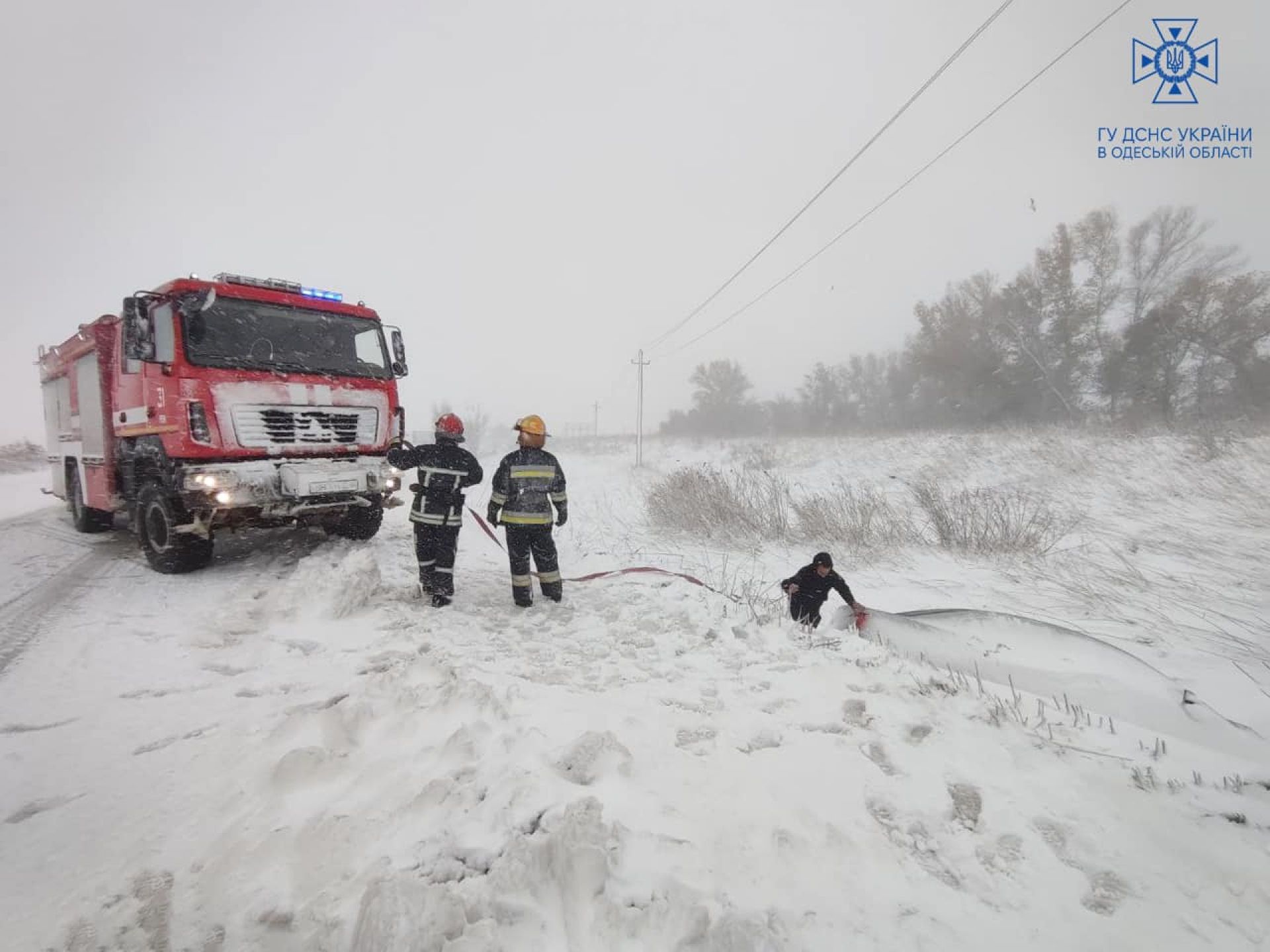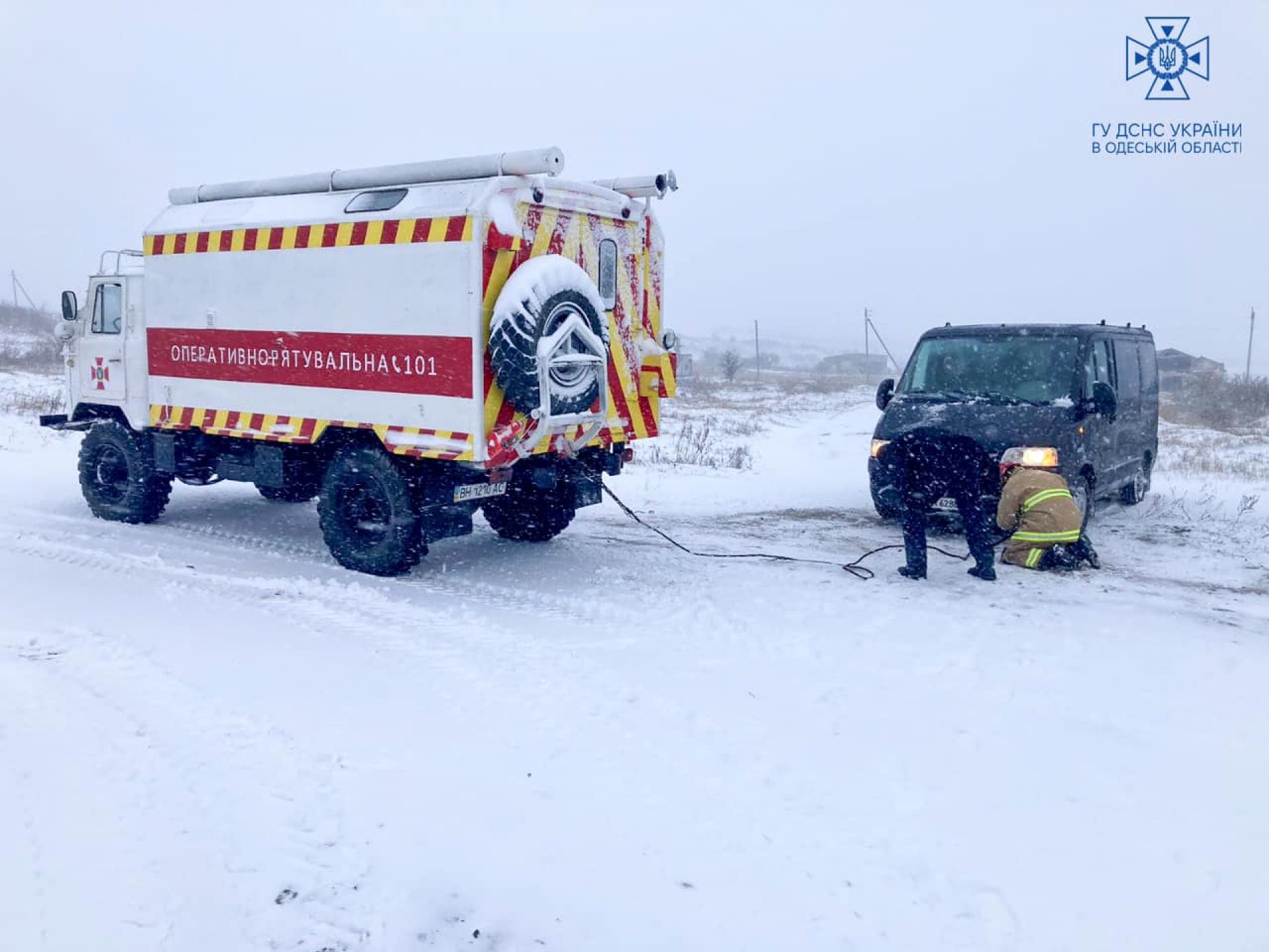 Поблизу села Удобне прикордонники з автобусів евакуювали 42 людини, зокрема 10 дітей. За допомогою снігохода на трасі Ізмаїл-Рені рятувальники визволили 6 людей.