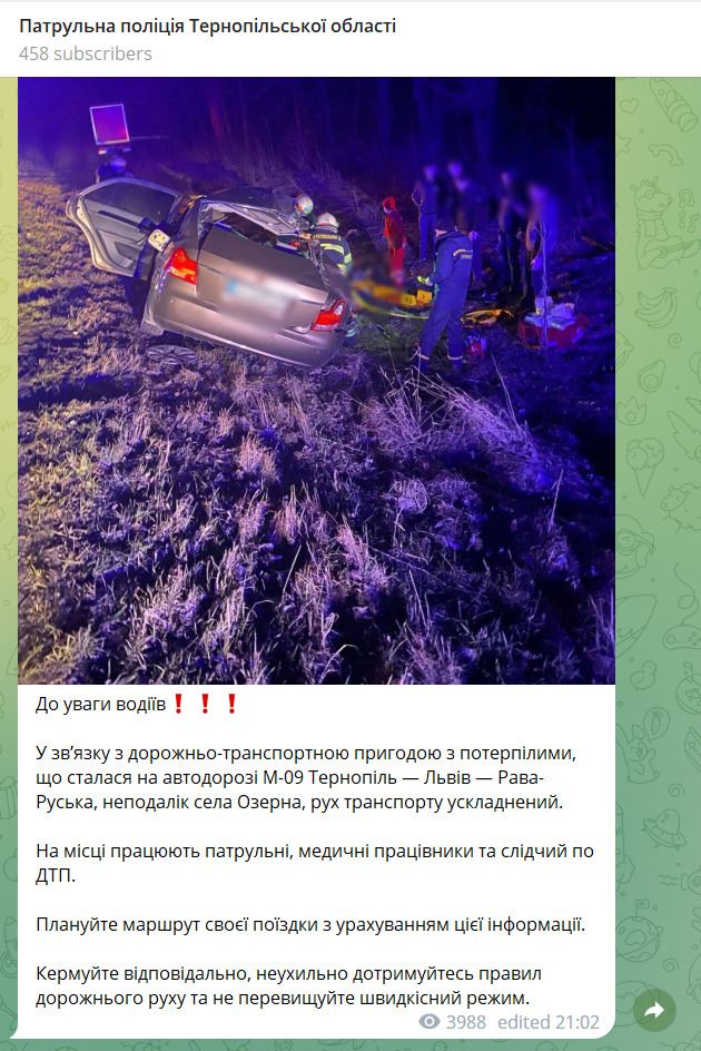 - На автодорозі М-09 Тернопіль – Львів –Рава-Руська неподалік села Озерна, сталася аварія.