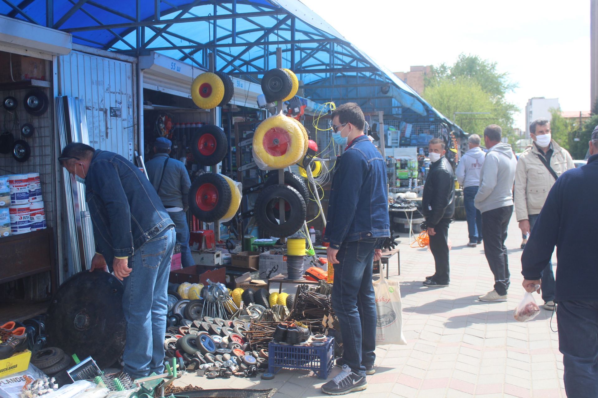 На території «Центрального ринку» дозволили продавати непродовольчі товари 16 травня. Там запрацювала більша частина кіосків. Однак овочі та фрукти там придбати важко – є всього кілька продавців. Купити їх можна на овочевому ринку. Там на вході проводять температурний скринінг. Покупців впускають лише в масках.