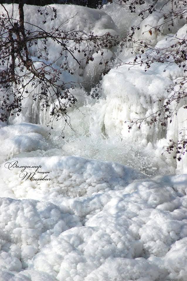 Нерукотворна краса: дивіться фото замерзлого Джуринського водоспаду