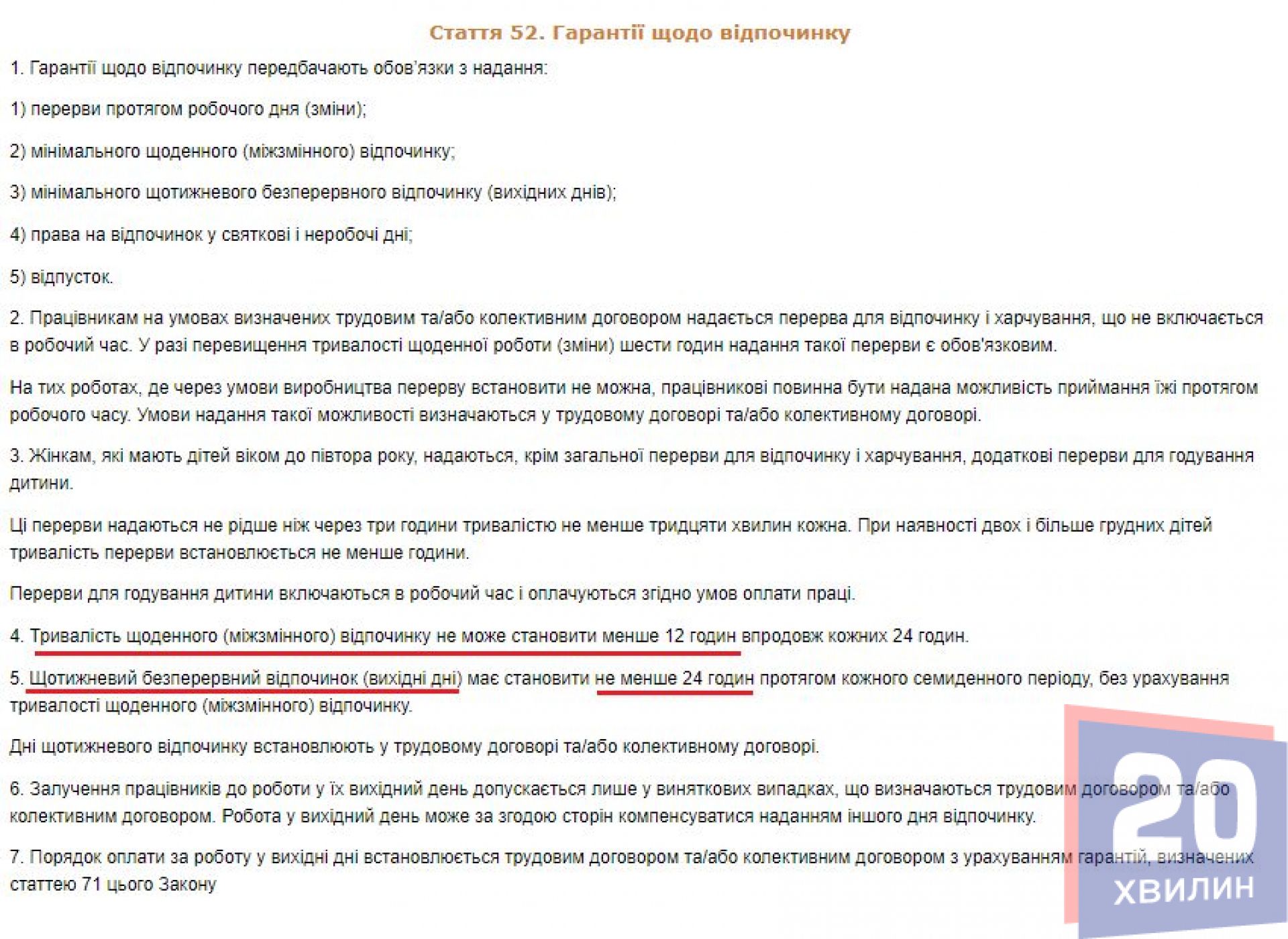 Тепер роботодавець зможе встановити 6-денний робочий день, бо щотижневий безперервний відпочинок (вихідні дні), відповідно до нового законопроєкту, має становити не менше 24 годин.