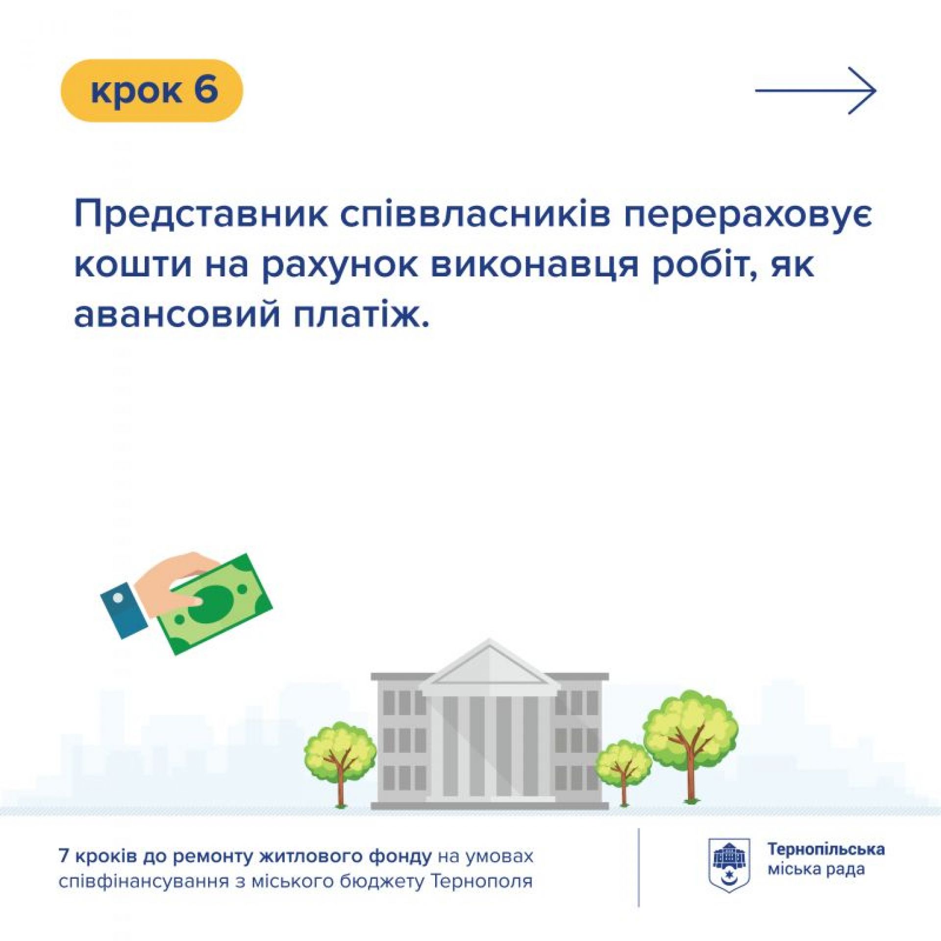 Крок 6. Представник співвласників перераховує кошти на рахунок виконавця робіт, як авансовий платіж.