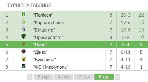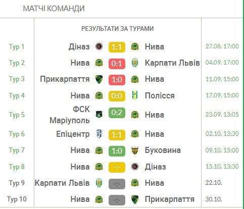 «Нива» при новому тренеру Сергію Задорожному у нинішньому чемпіонаті ще не програвала у 4-х матчах, здобувши дві перемоги та двічі зігравши внічию.