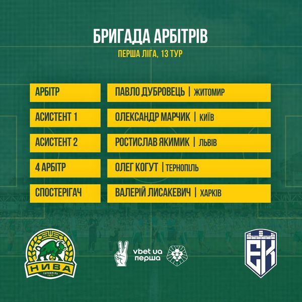 19 листопада о 12:00 відбудеться поєдинок 13 туру чемпіонату Vbet UA Перша між футбольним клубом «Нива» Тернопіль та «Епіцентр» з Кам'янець-Подільського.