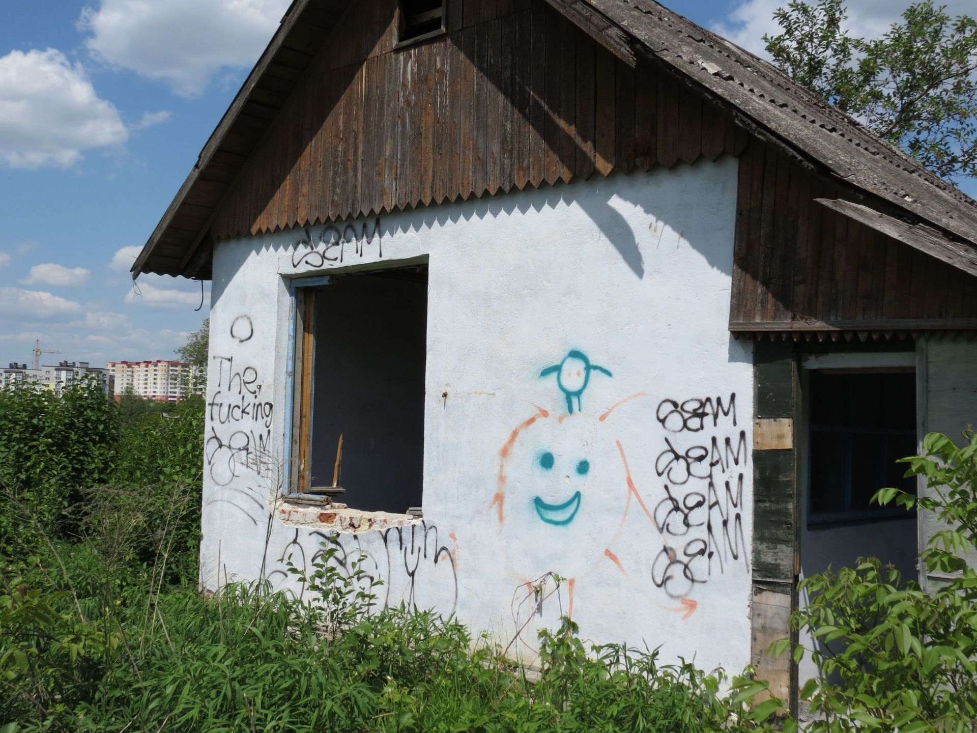 Більшість будиночків зруйновані. Дехто розібрав цегляні стіни. Ми побачили чимало згарищ. Від деяких дерев’яних будинків майже нічого не лишилося. На ділянках сміття, старі меблі, ганчірки.